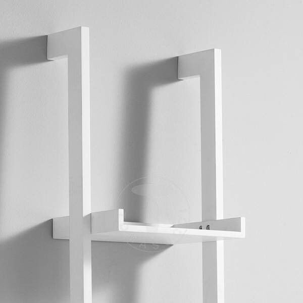 La libreria è in mdf, con ripiani laccati bianchi opachi.