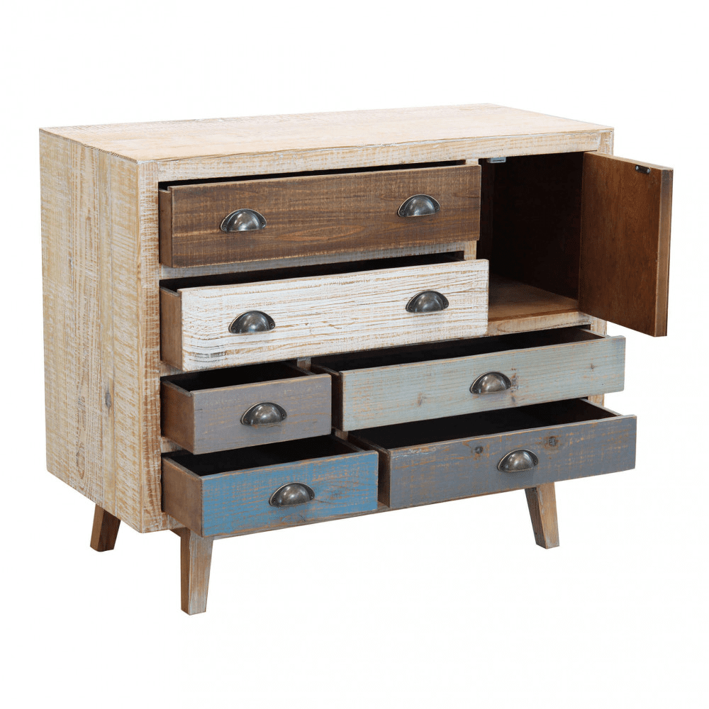 Mobile con 6 cassetti e 1 anta in legno colorato