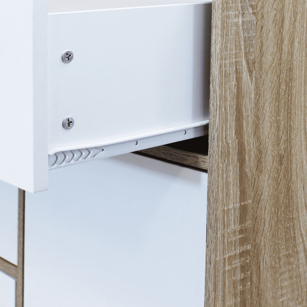 Mobile in melammina con 1 ante, 3 cassetti e 1 ripiano naturali, struttura bianca o grigio scura