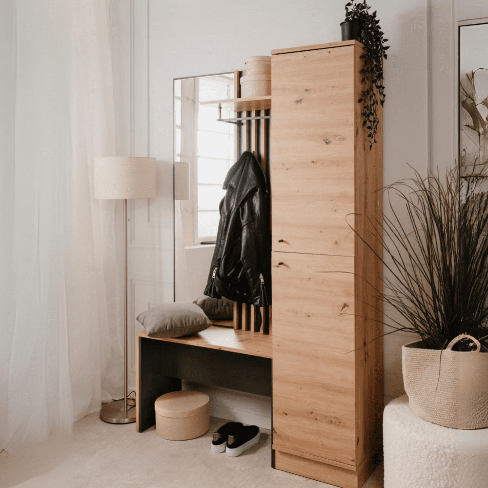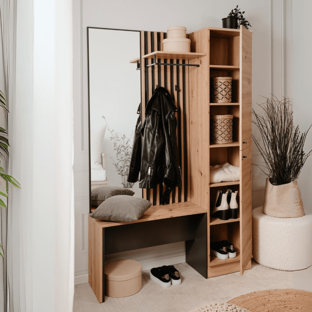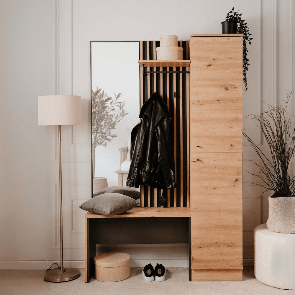 Mobile ingresso Medan 42B cannettato con 2 ante e panca colore quercia e antracite
