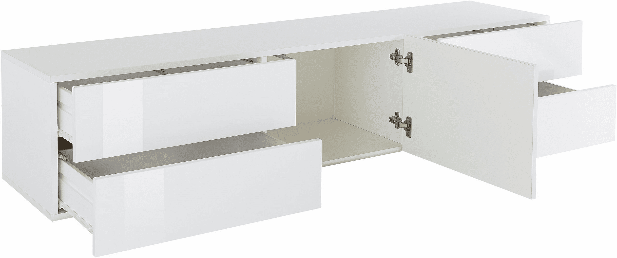 Sotto il piano si trova un’anta battente e quattro cassetti con sistema di apertura push-to-open.