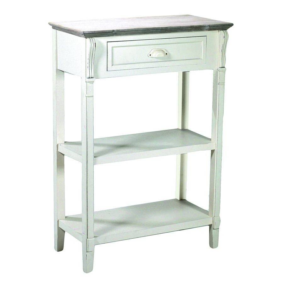 La struttura è in legno, on due ripiani ed un cassetto. I cassetti e le finiture sono tutti decorati con un colore anticato.