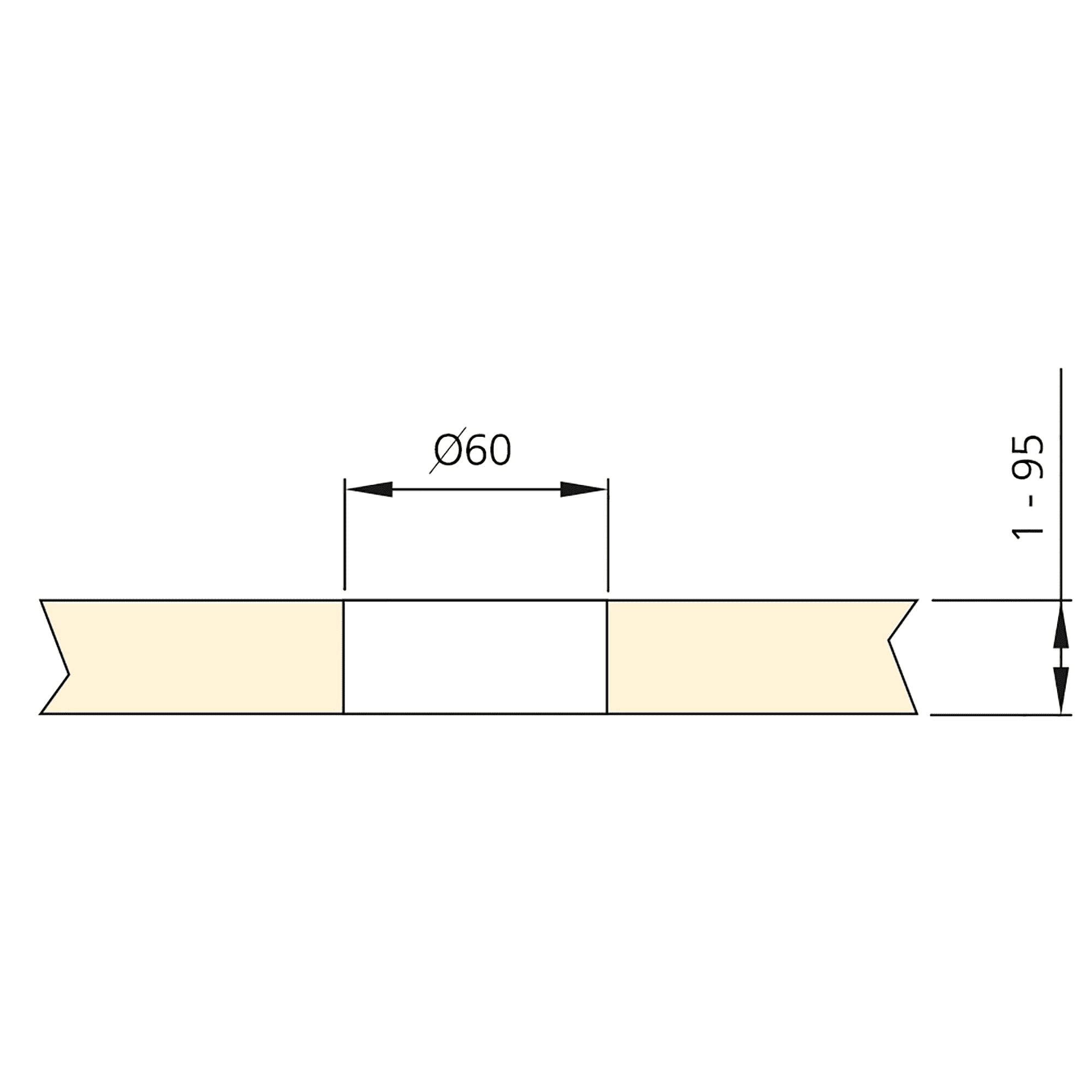 La sua istallazione è molto versatile, richiede solo un foro D. 60 mm ed ha la possibilità di essere montato in superfici di grande spessore, tra 1 e 95 mm. Inoltre si fissa al mobile senza necessità di ferramenta grazie a una bussola di fissaggio manuale. Dispone di un discreto indicatore LED di accensione e un cavo di 1,8 mt con presa per il funzionamento a 230V AC 50Hz.