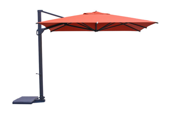 PETER presenta un telaio in alluminio, color grafite, è molto maneggevole con apertura semplice e permette di posizionare l’ombrellone in più posizioni.