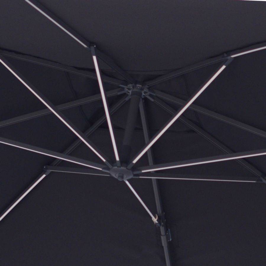 L’ombrellone Florida viene realizzato con una struttura in alluminio verniciata a polvere color ruggine con palo laterale di 50x68x1.6 mm. E’ composto da otto stecche di 13x20x0.8 mm di spessore sulle quali sono state inserite delle luci a led