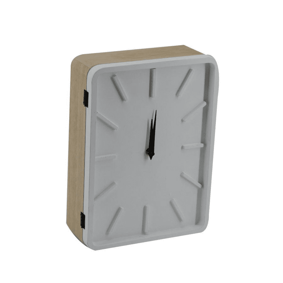Orologio legno bianco con portachiavi cancelletto 8p rettangolare cm22x30x8
