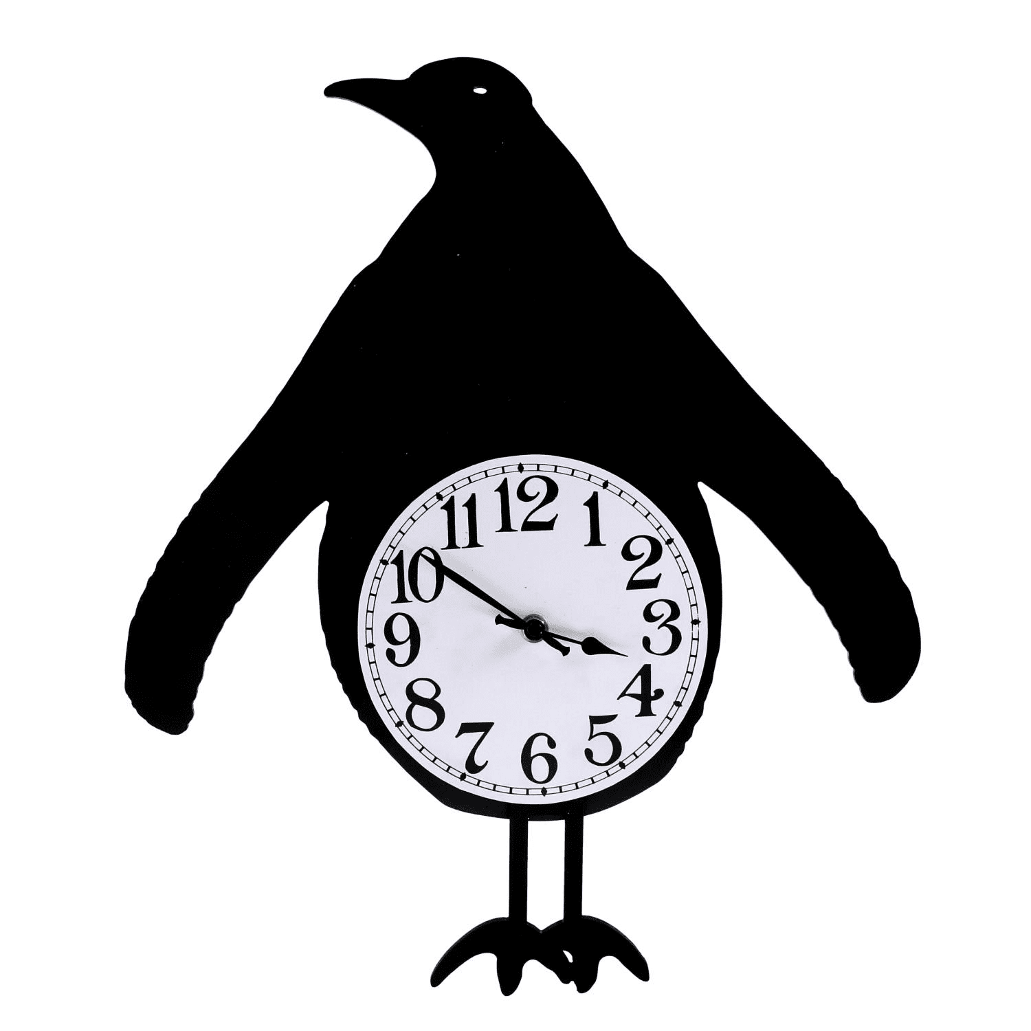 Orologio legno pinguino con pendolo nero cm38x37x6