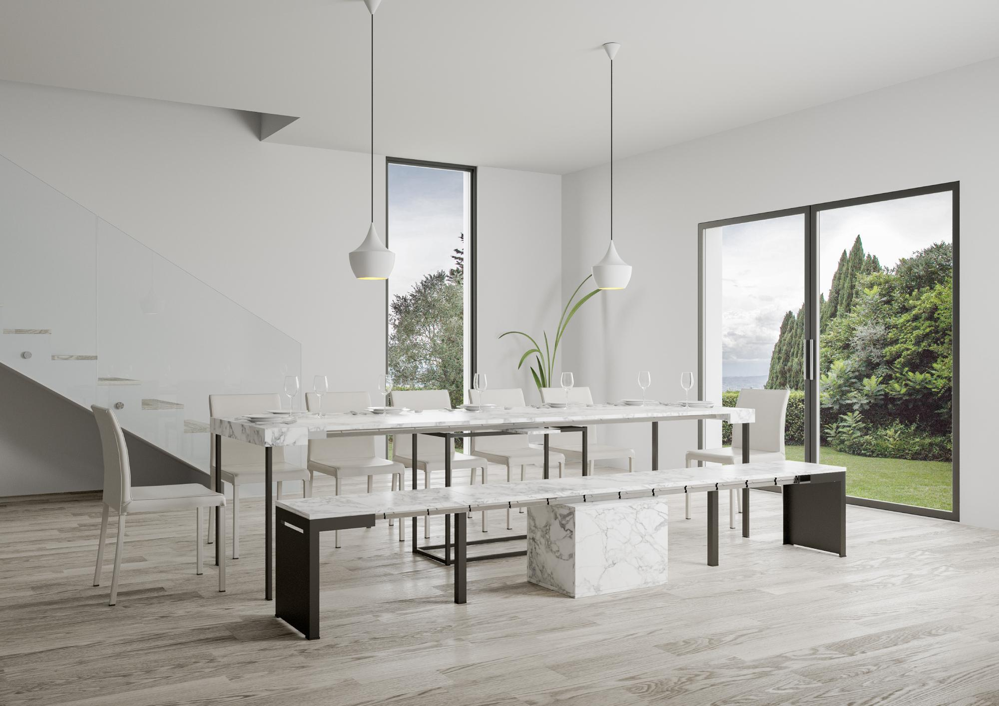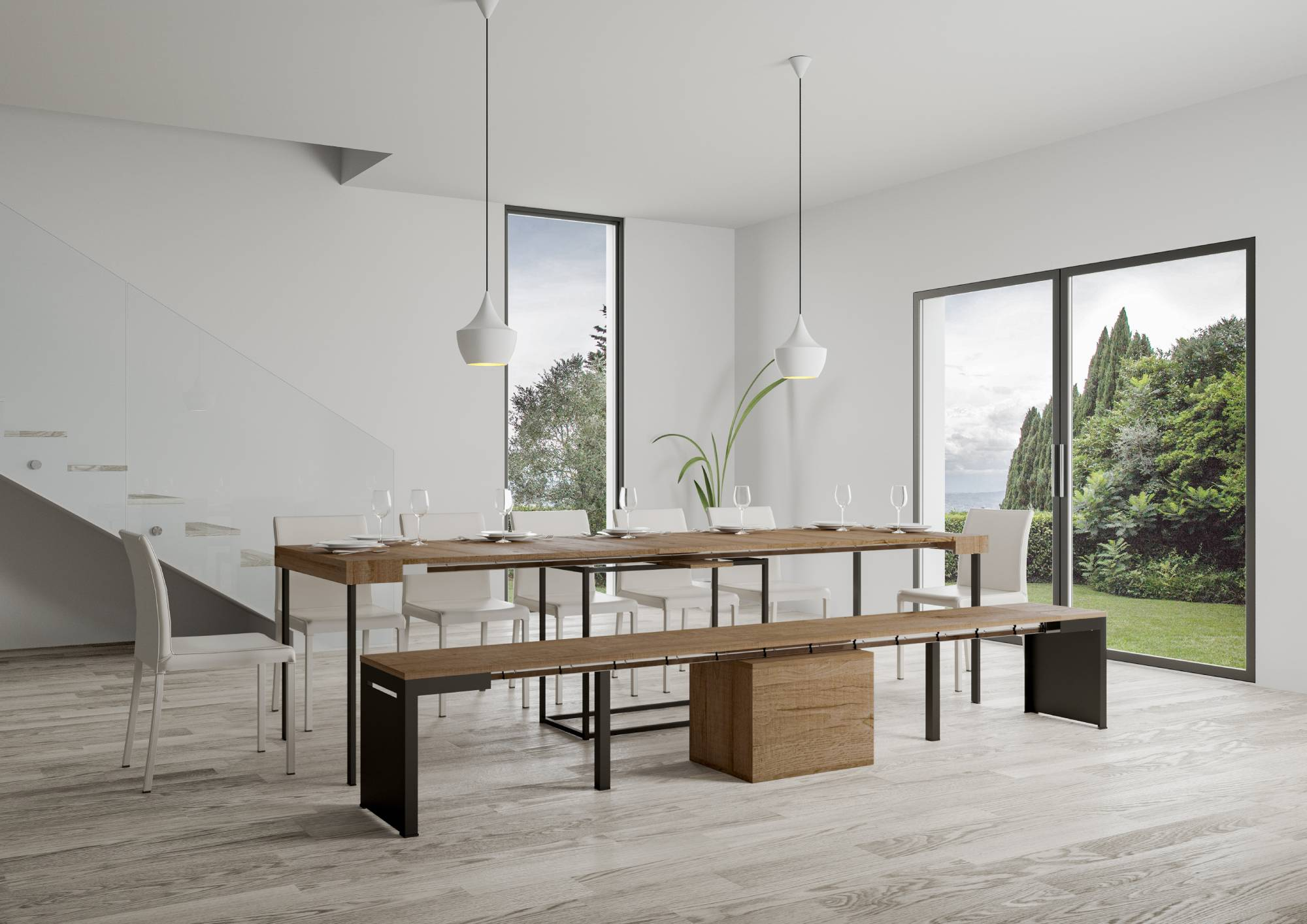 La panca allungabile Walk può essere facilmente allungata fino a 305 cm, in grado di ospitare 6 persone.