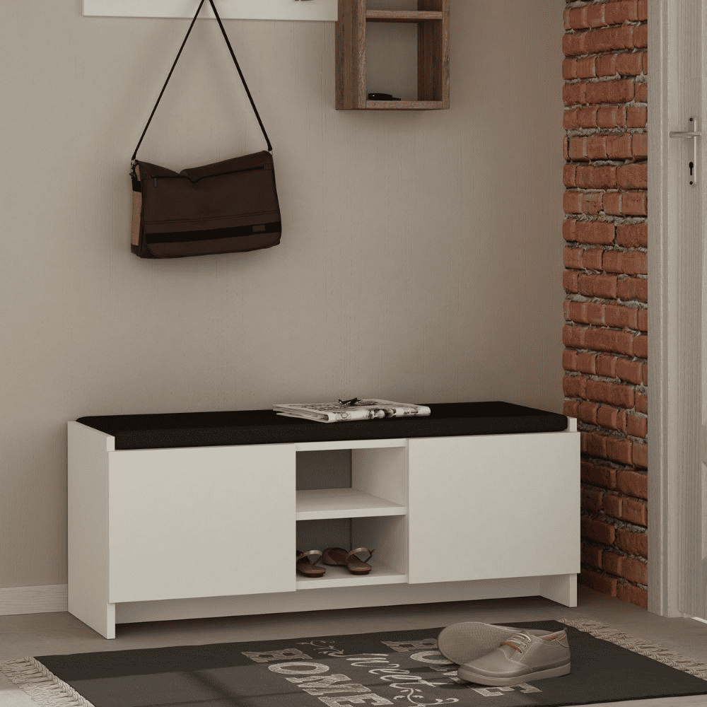 Panca scarpiera Zulla bianca con ante e cuscino