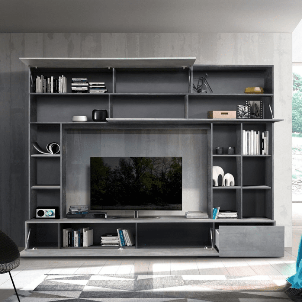 Parete attrezzata Boran grigio ossido beton