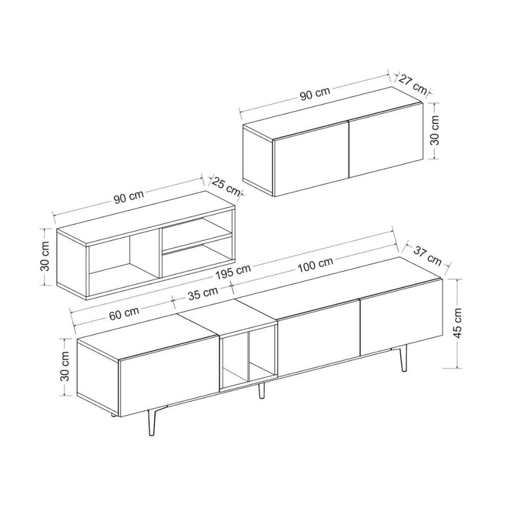 Misure porta tv: 195 x37x45 h cm. (vedi dettagli in foto)