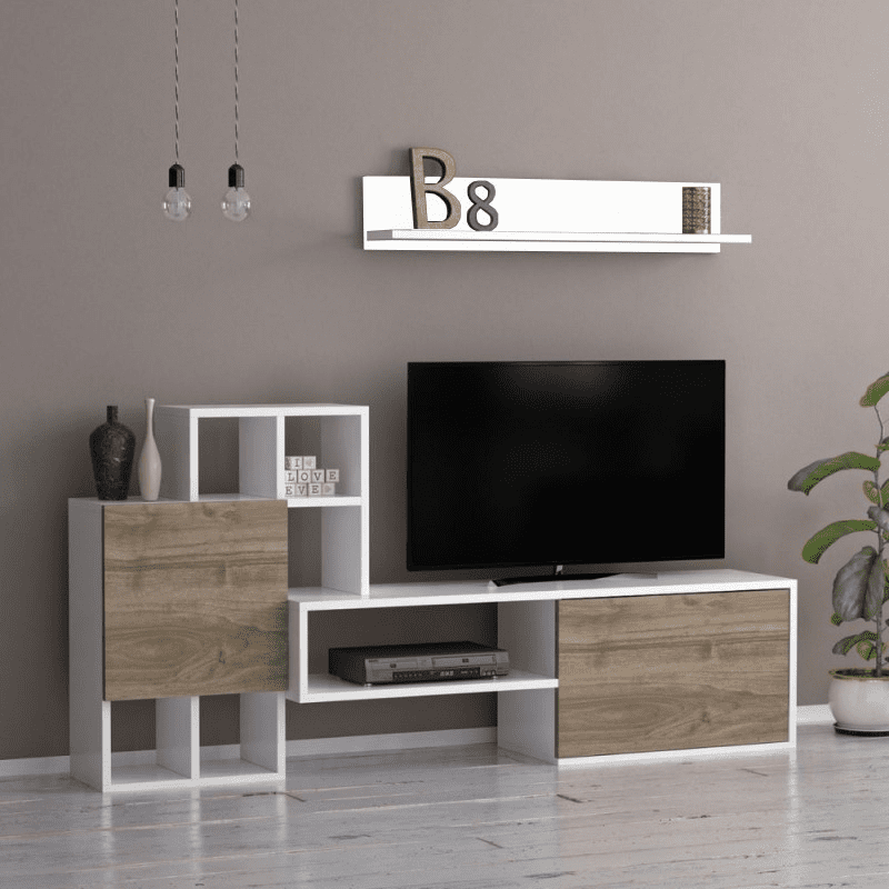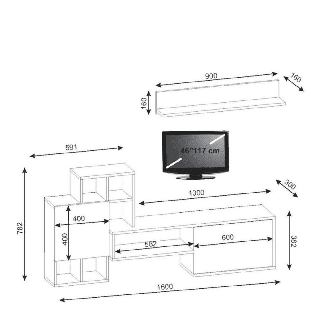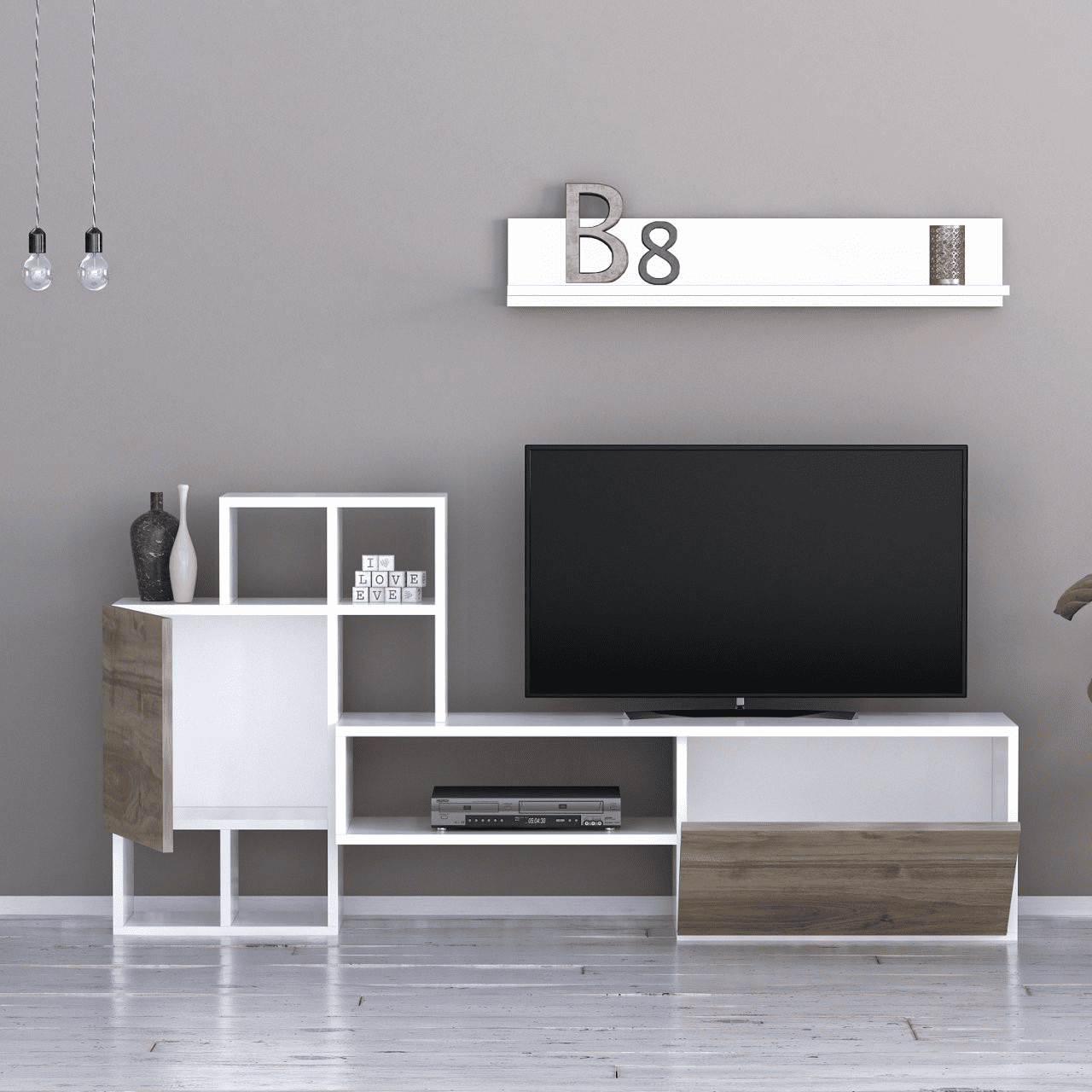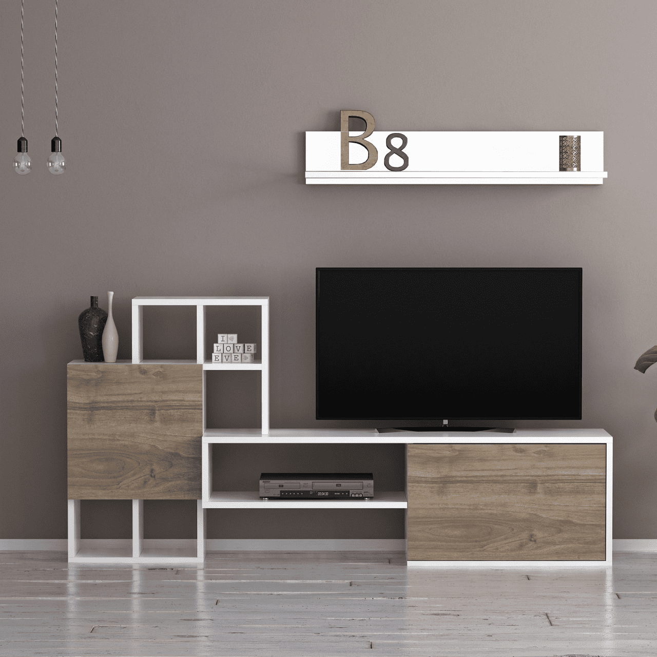 Parete attrezzata Rinaldo 160 bianca frontali noce