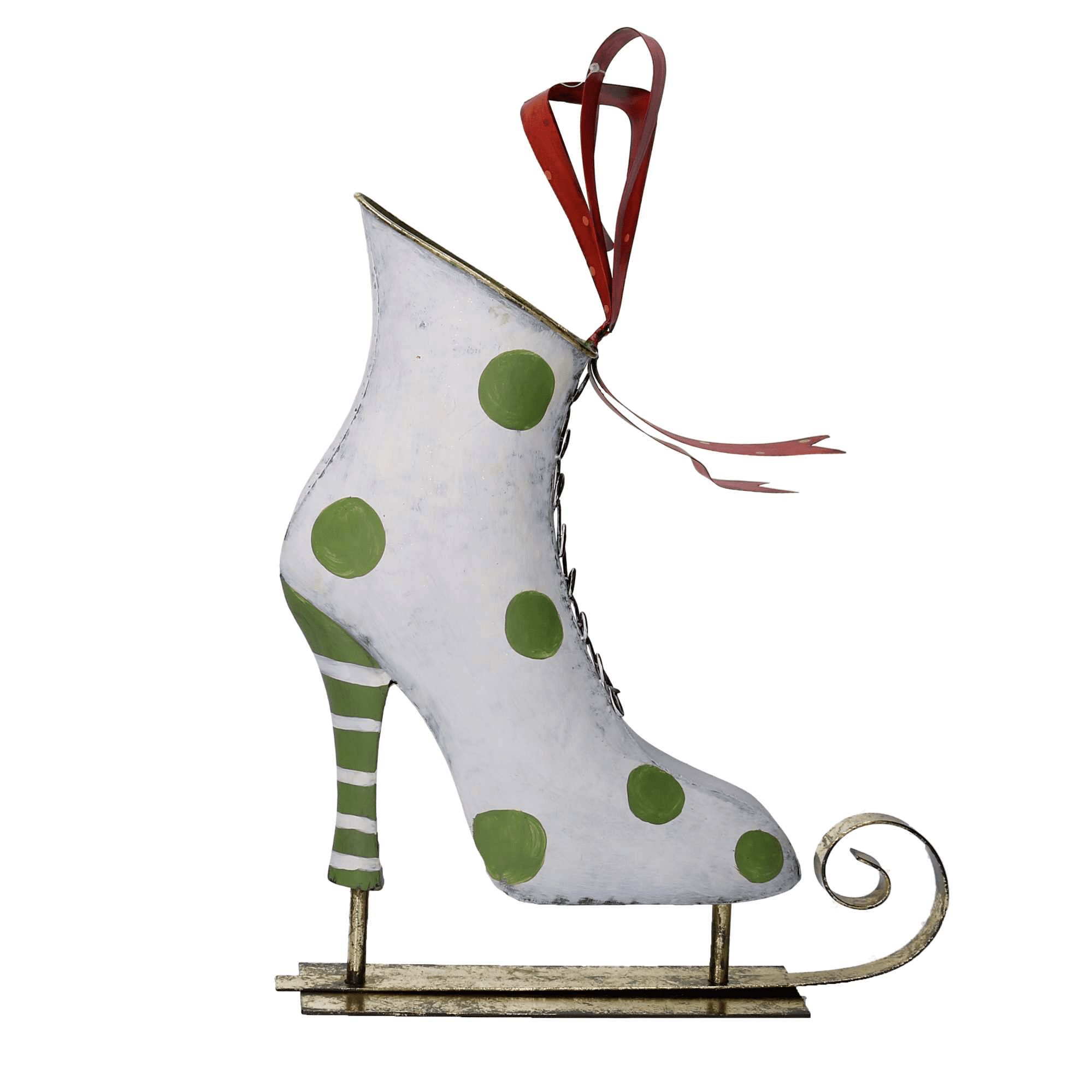 Pattini metallo verde e bianco cm 30×11,5h38,1