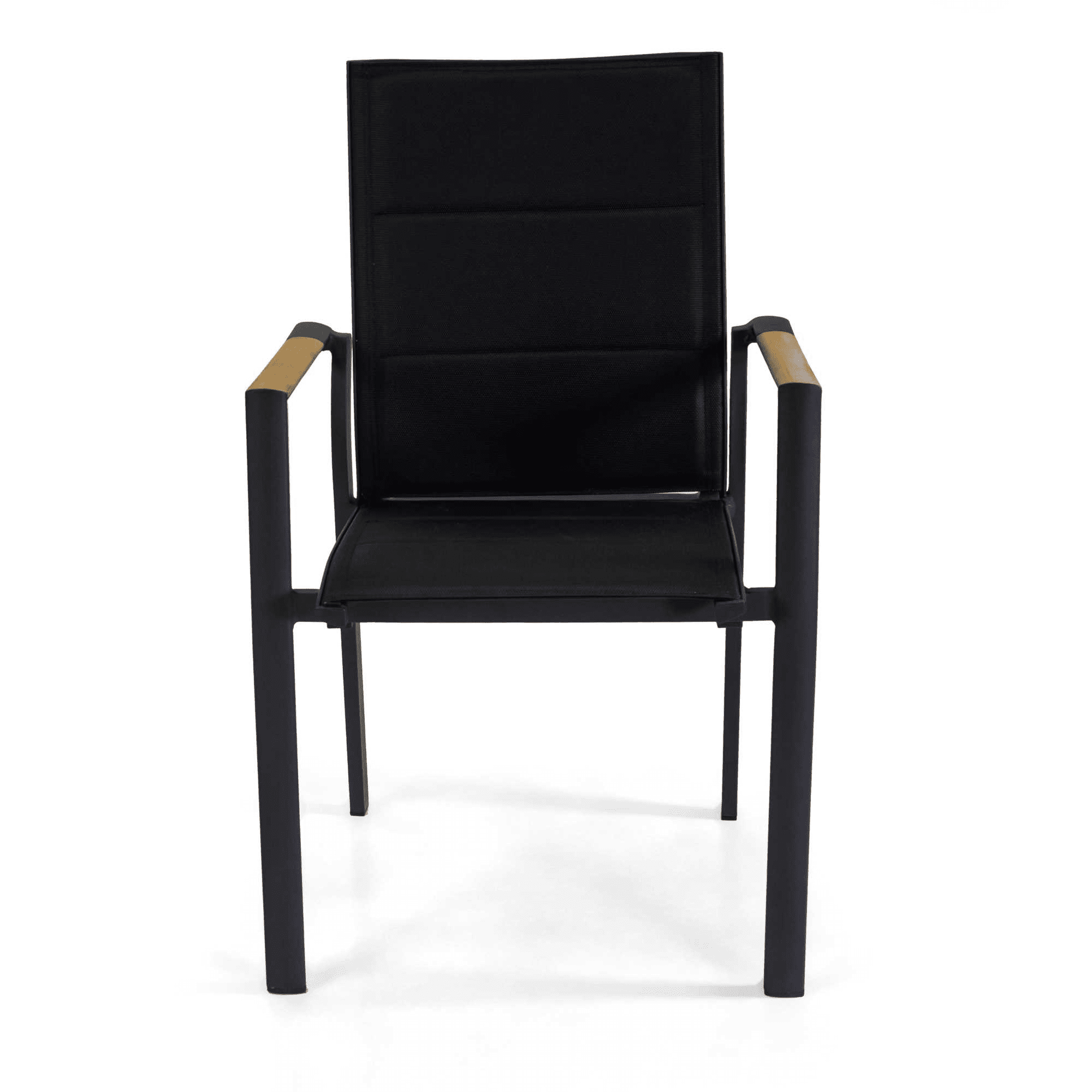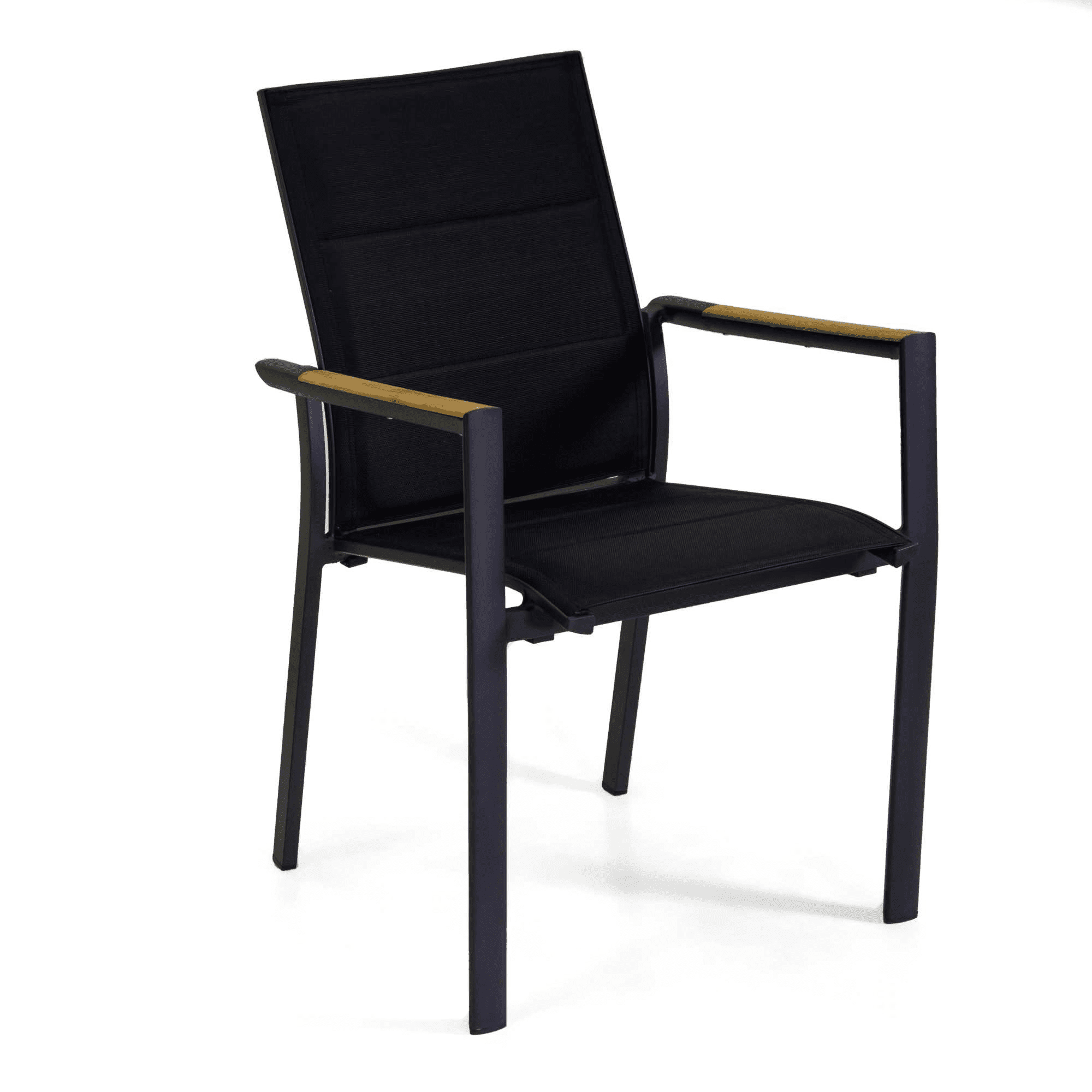 Poltrona alluminio Rachel nero con textilene nero e teak 56x58h45/88