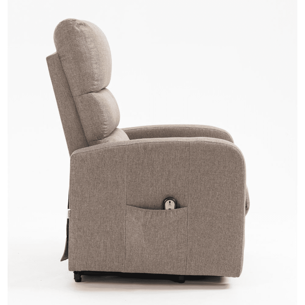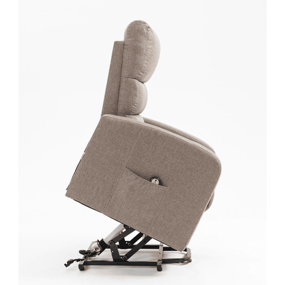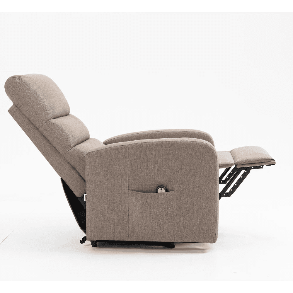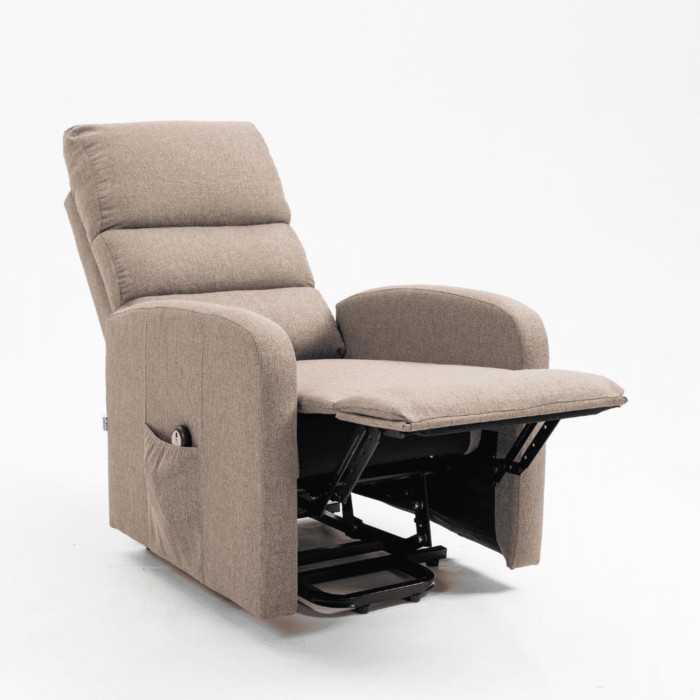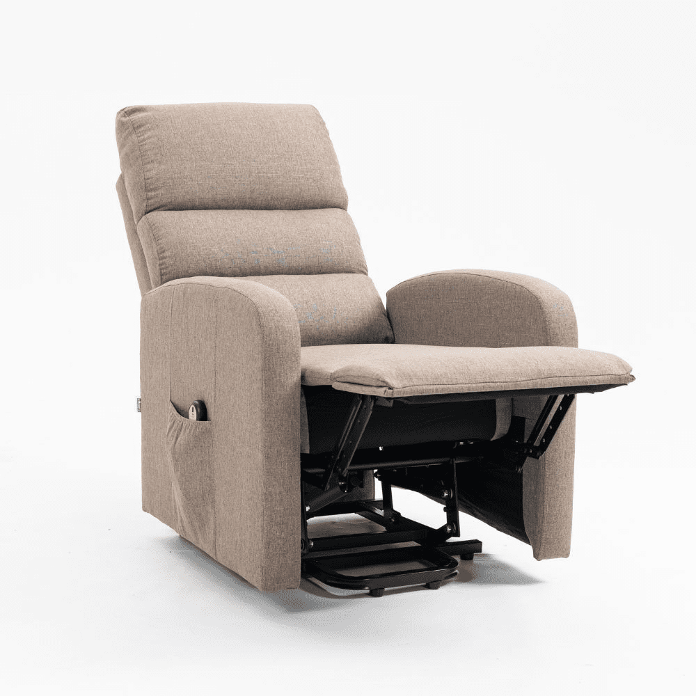 Poltrona alzapersona Lorena un motore in tessuto cappuccino