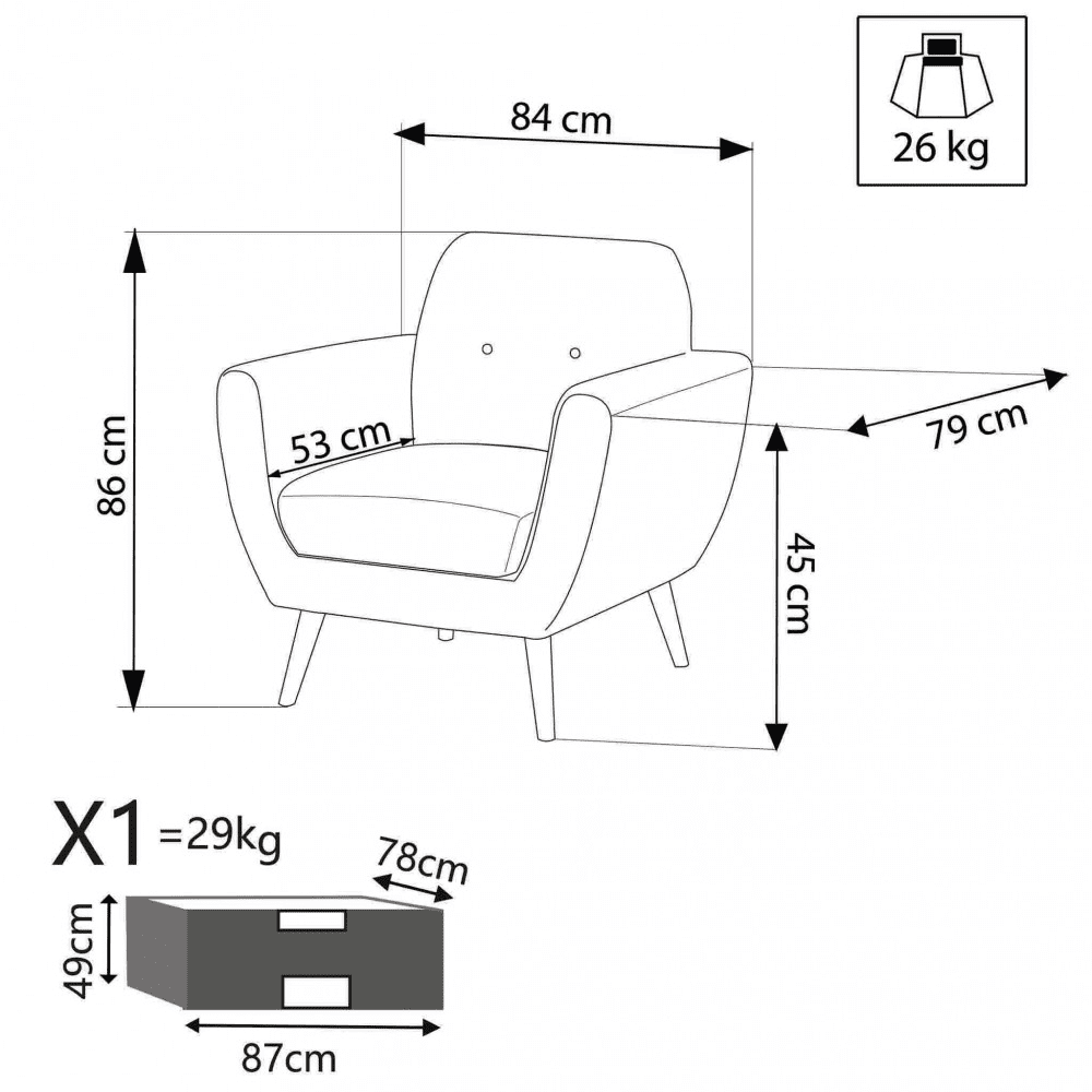Poltrona GRIGIO CHIARO, GRIGIO SCURO o BLU con bottoni e gambe in polipropilene