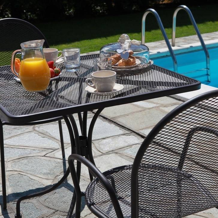 Per un giardino moderno o uno più classico la poltrona in ferro Ronna è l’ideale, abbinata al suo tavolino.