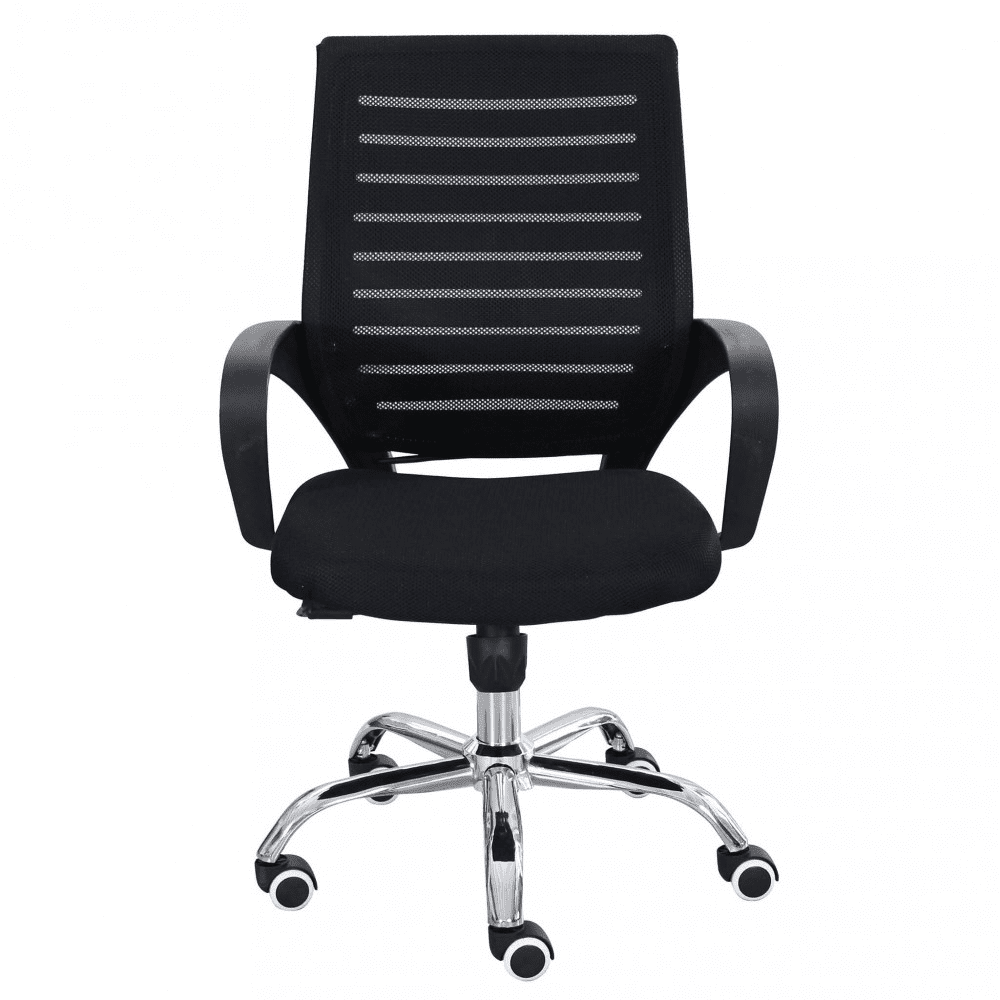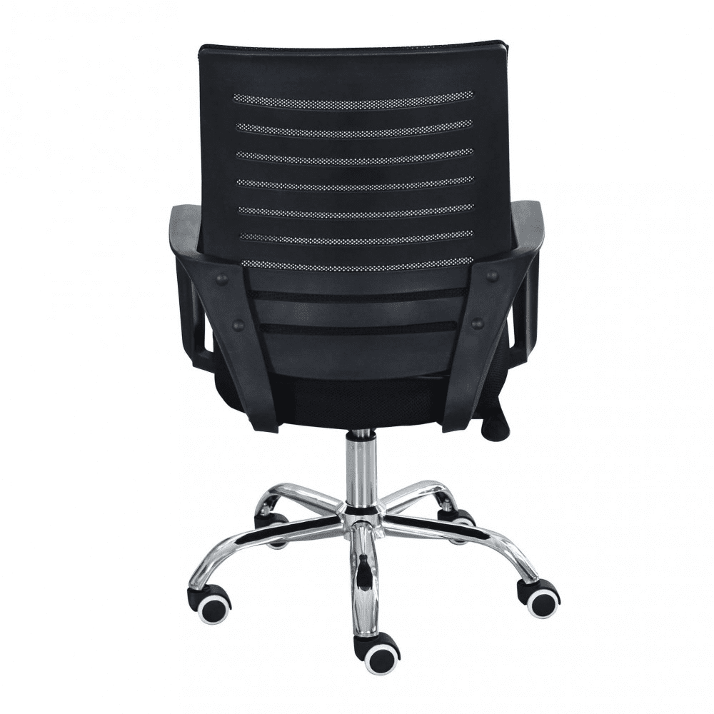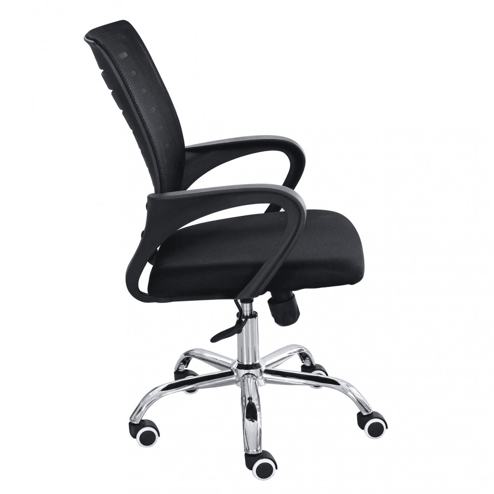 Poltrona da ufficio in tessuto, braccioli in plastica e base cromata con ruote