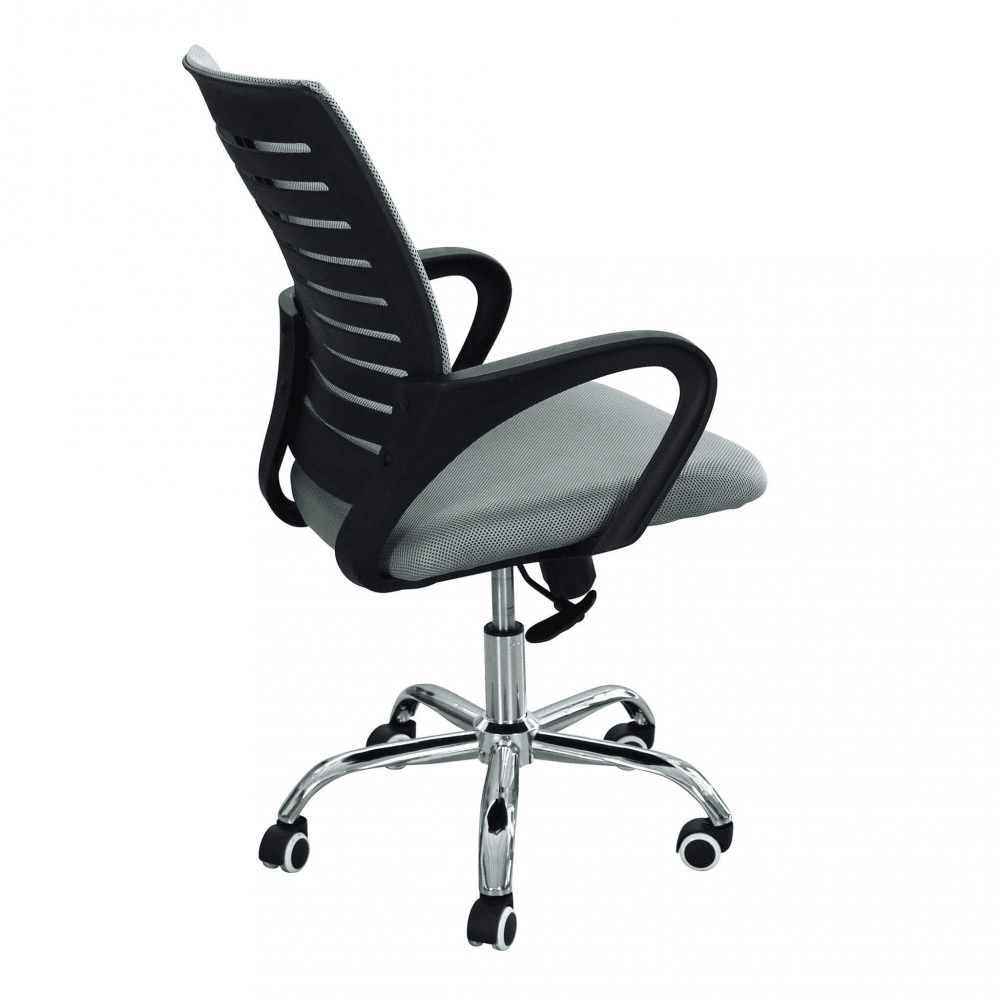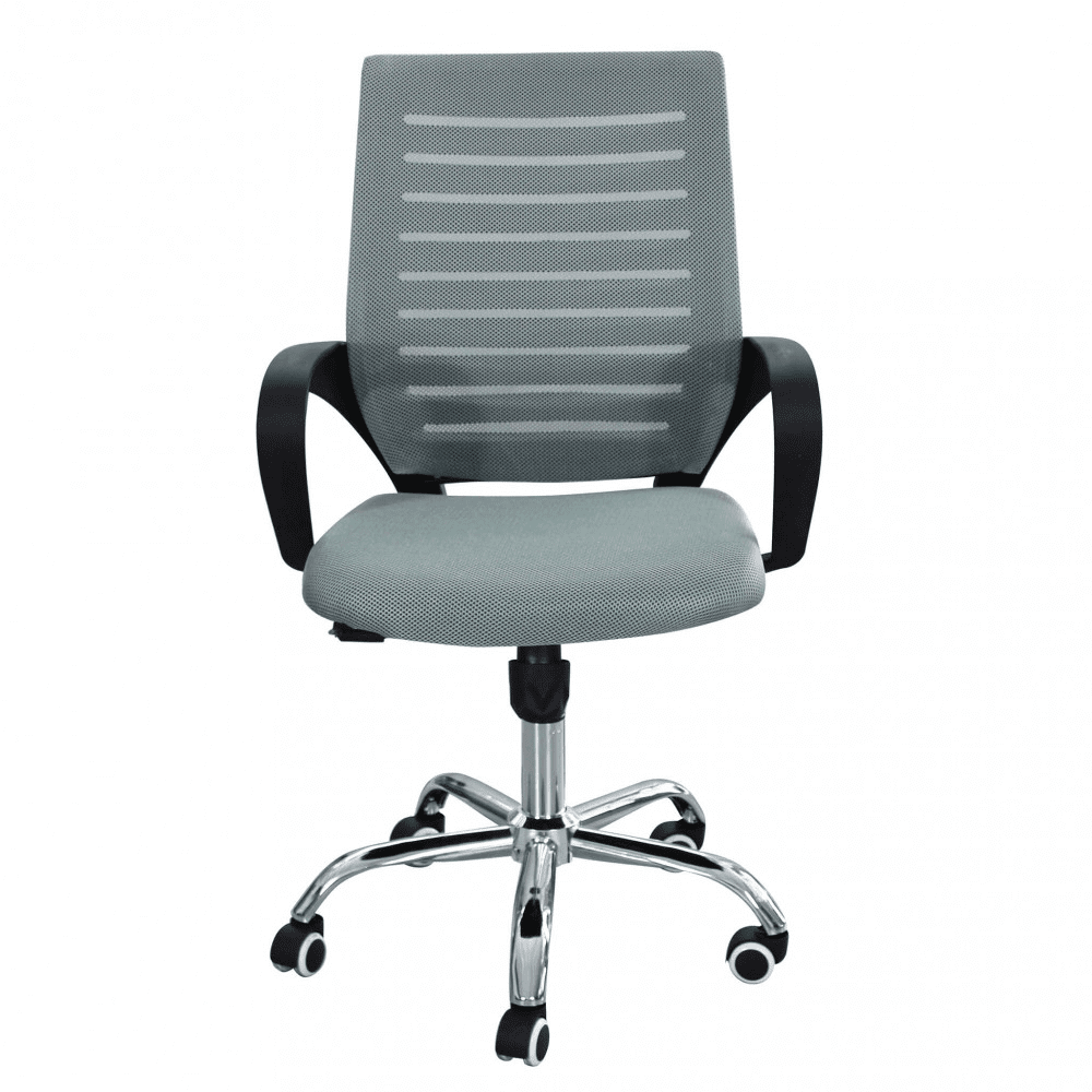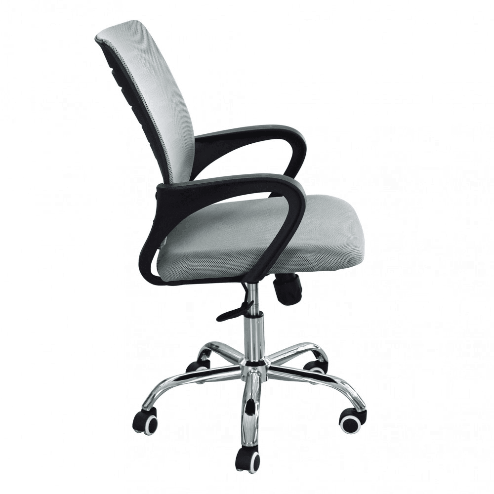 Poltrona da ufficio in tessuto, braccioli in plastica e base cromata con ruote