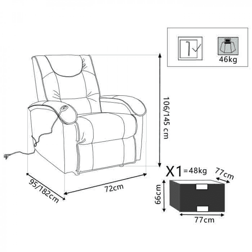 Poltrona in ecopelle BEIGE o MARRONE Dispone di apertura distensiva reclinabile e alza e abbassa elettrica