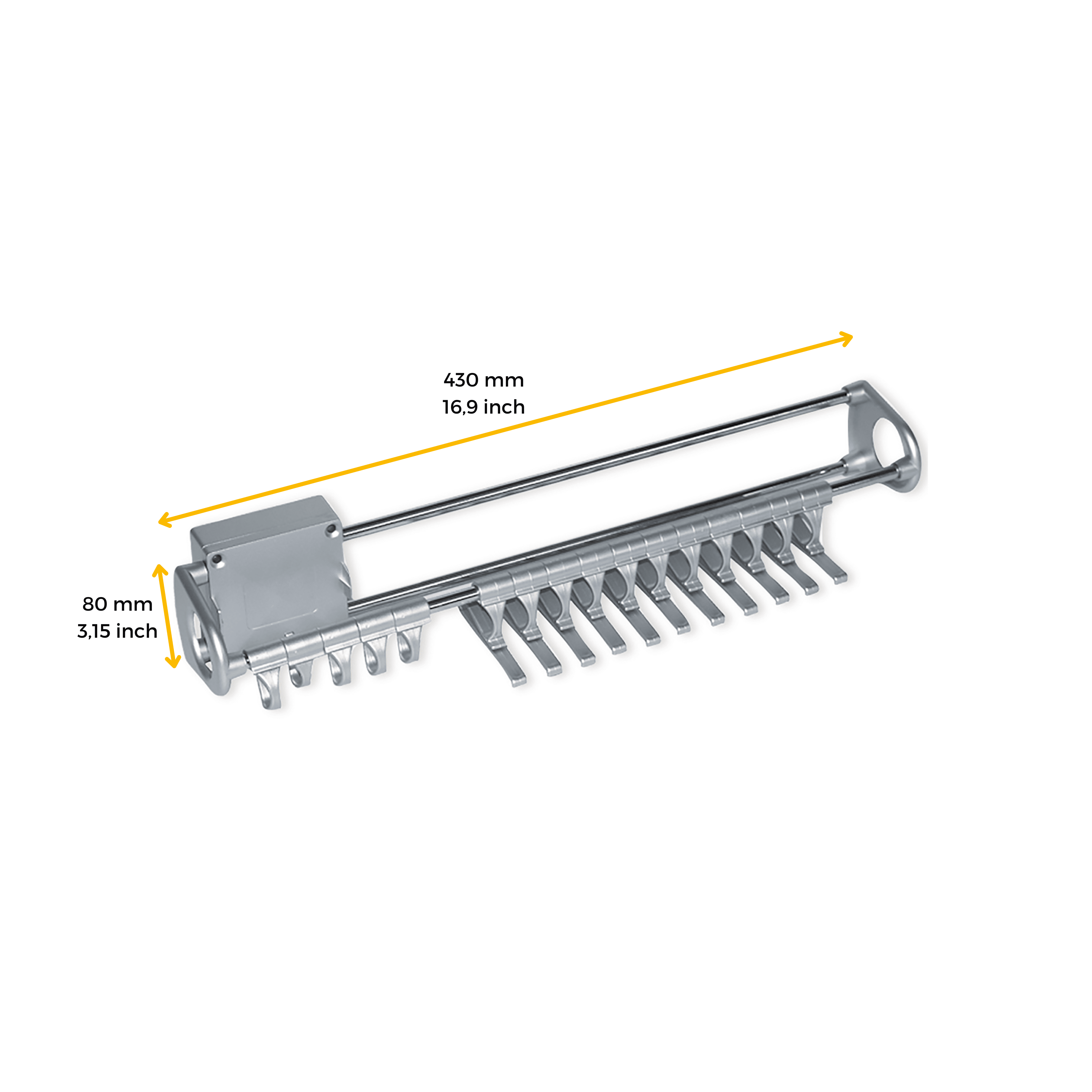Il porta cravatte – porta cinture laterale estraibile Self è l’accessorio ideale per mettere ordine all’interno dell’armadio. Essendo estraibile permette di tenere sempre a portata di mano cinture e cravatte.