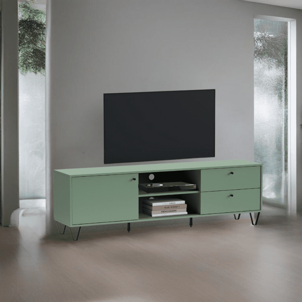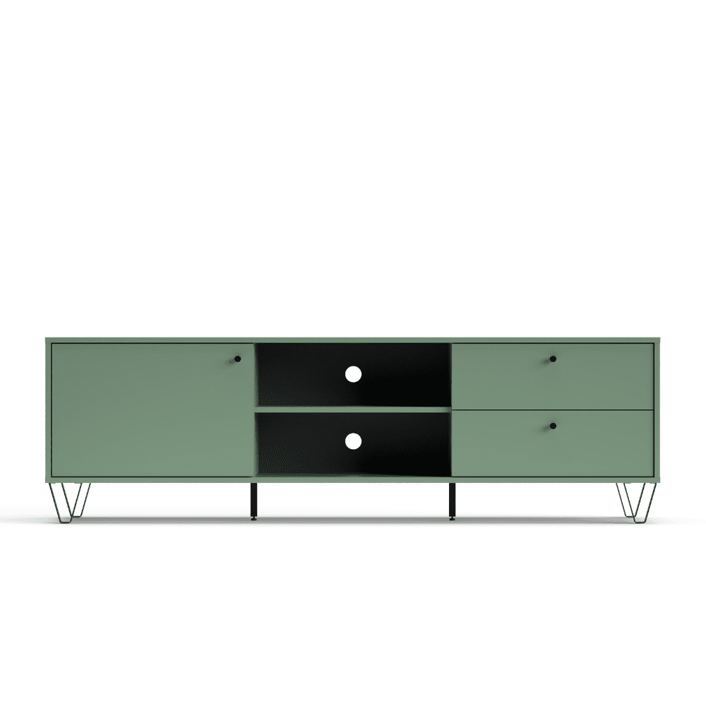 Porta TV Aldo1 con un’anta 2 cassetti e due vani a giorno colore verde