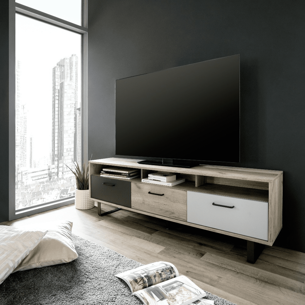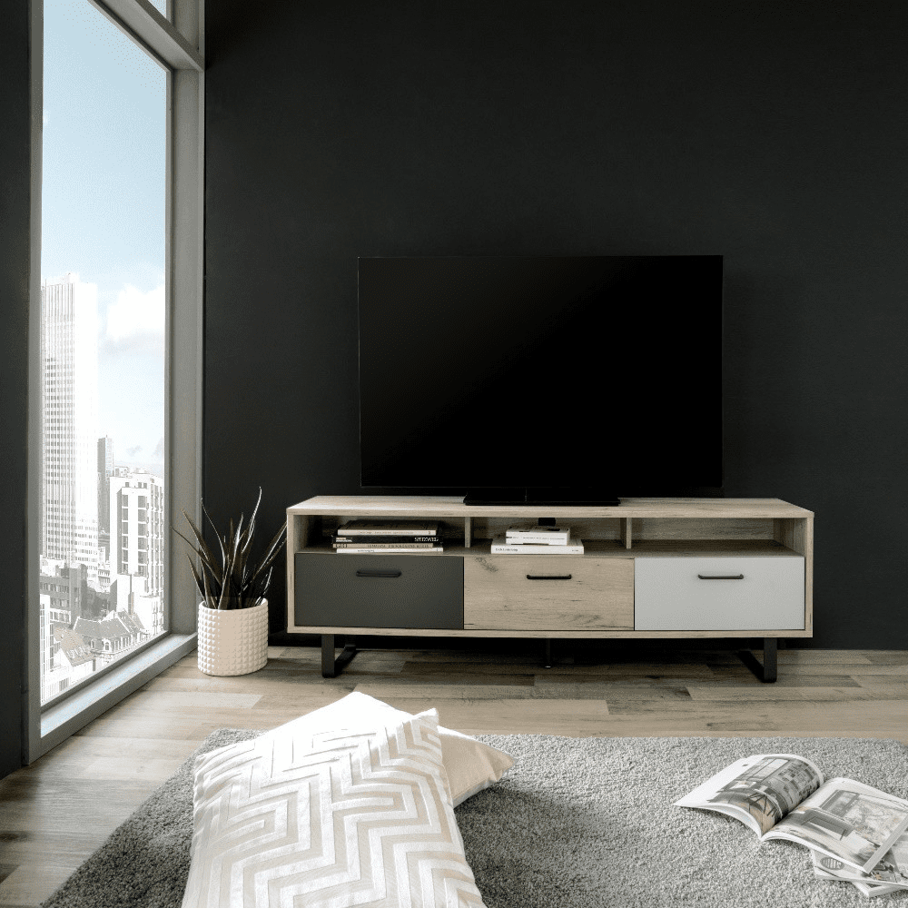 design scandinavo caratterizzato dai colori rovere naturale, grigio antracite e grigio chiaro.