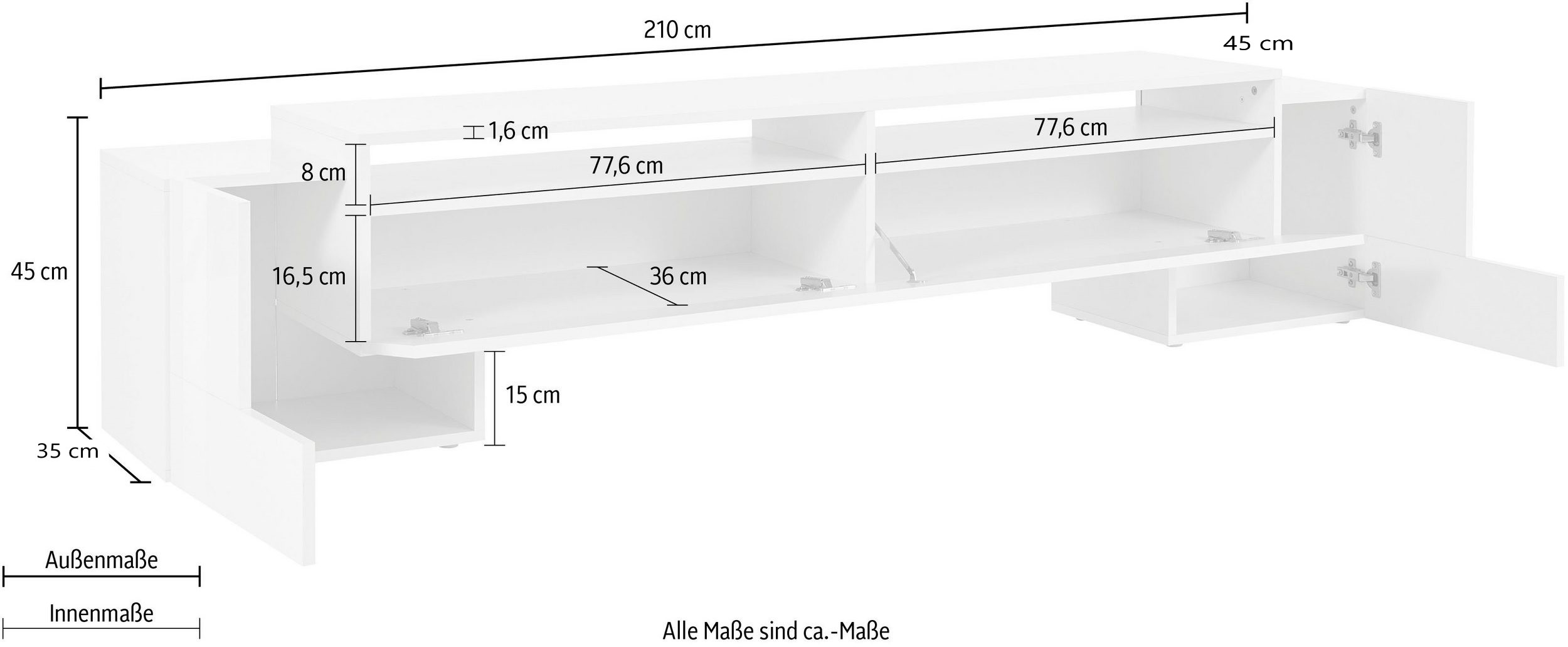 Il porta TV PILLON è costituito da 2 ante battenti ad L laterali e nella parte centrale da una grande anta ribalta e due vani a giorno.