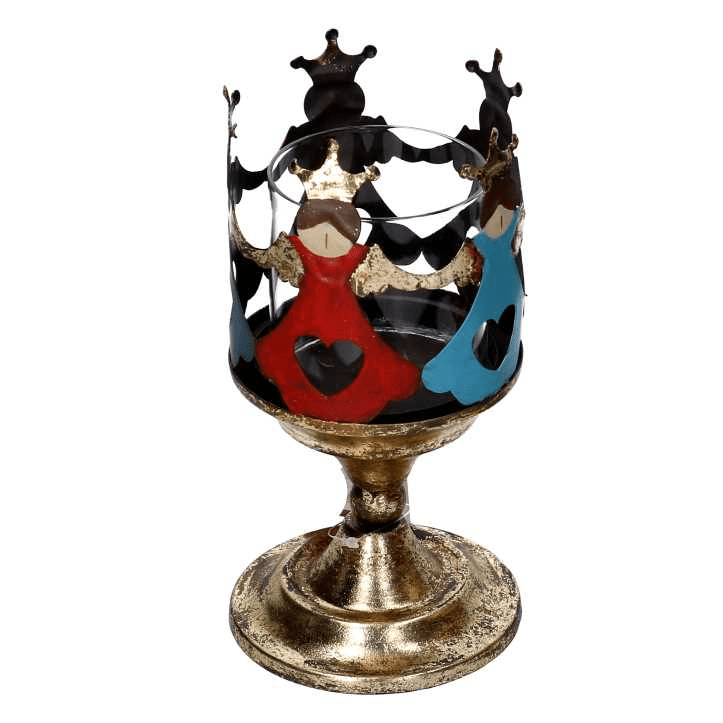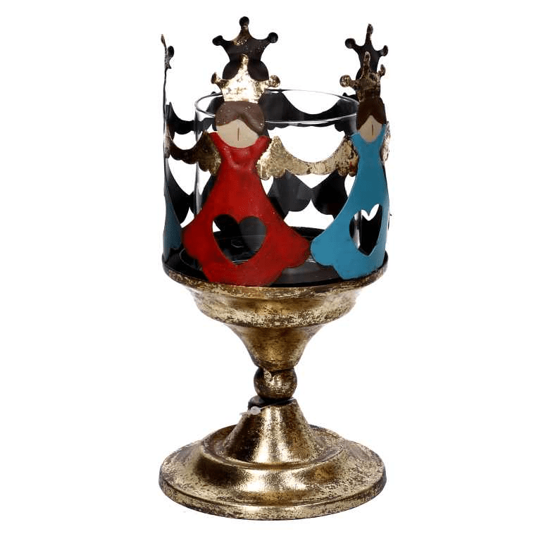 Portacandele metallo con angeli oro tondo cm ø10h21