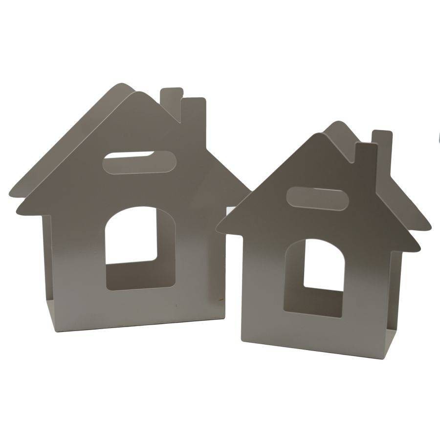 I portariviste sono sagomati in metallo color tortora e, grazie alla neutralità di questo colore, possono essere inseriti in un ambiente total white o molto colorato.