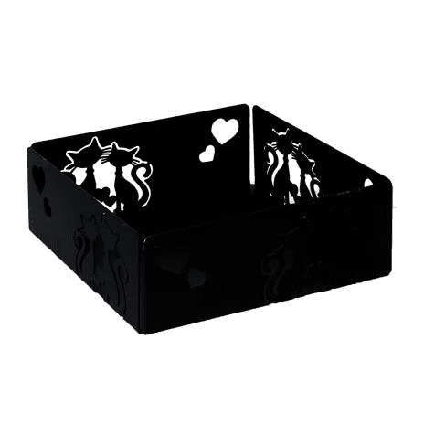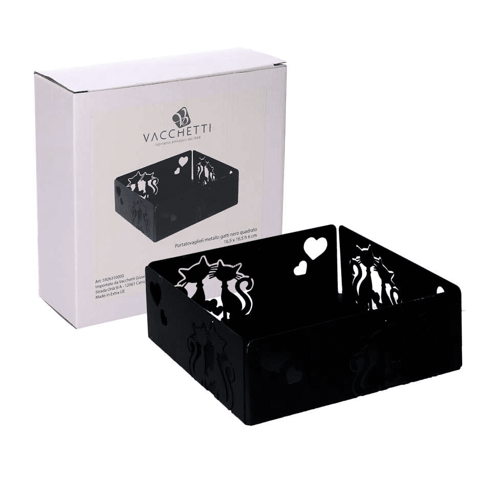 Portatovaglioli metallo gatti nero quadrato cm16,5×16,5h6