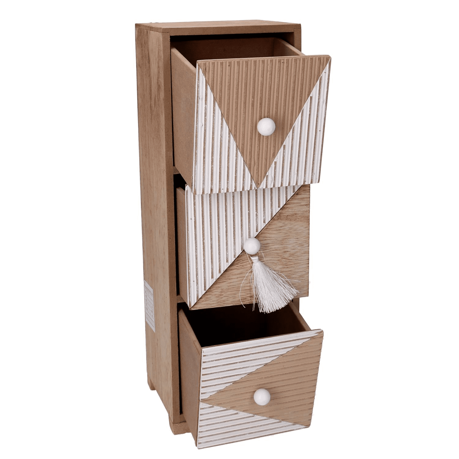 Portatutto legno 3 cassetti marrone rettangolare cm11,5×11,5h34