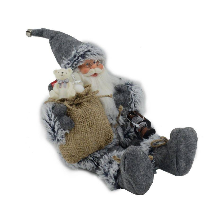 Pupazzo decorativo di Babbo Natale in posizione seduta.