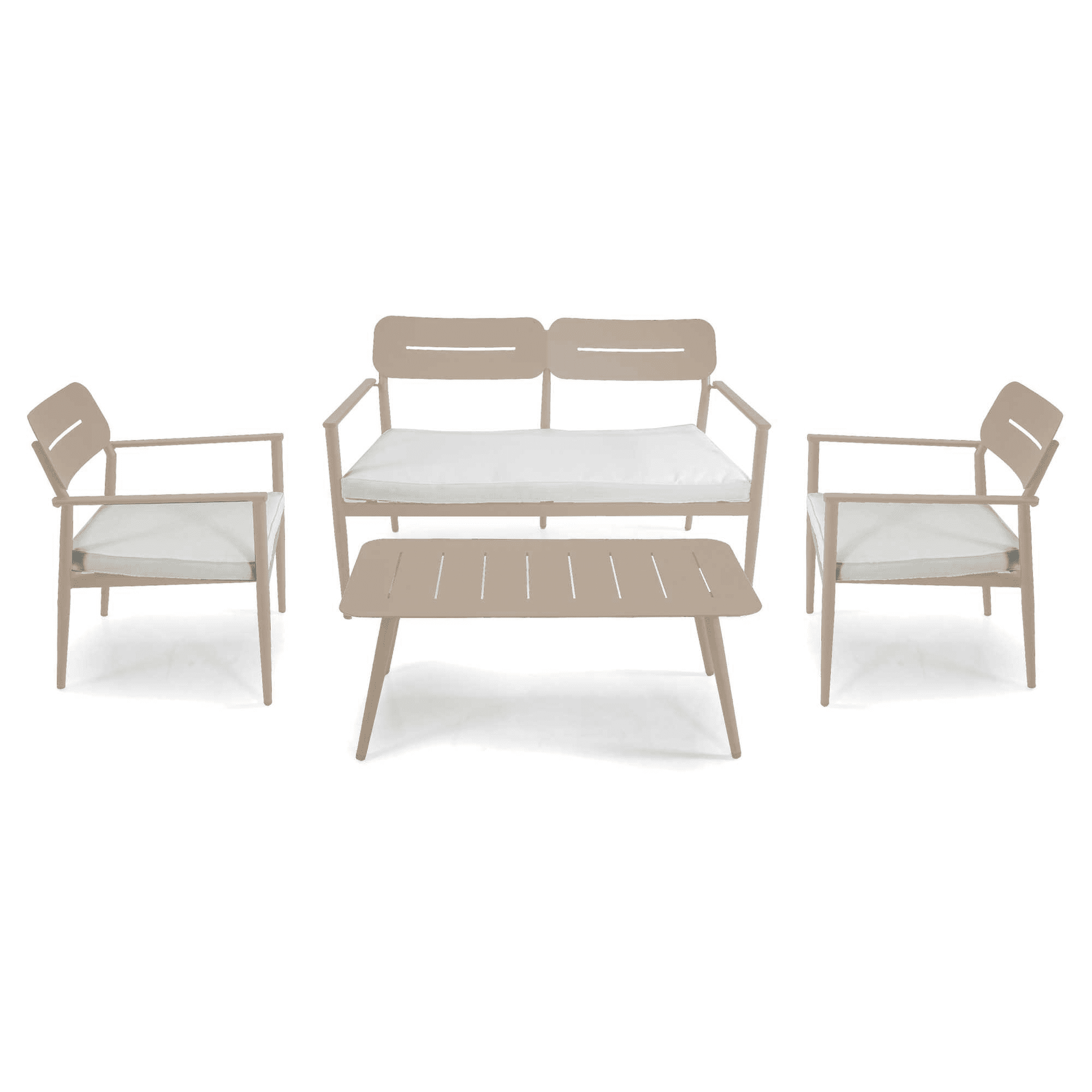 Salotto alluminio Ibiza 2 posti beige con cuscini crema