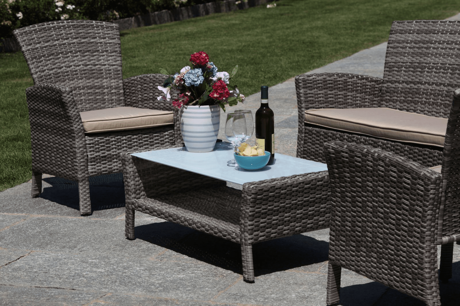Salotto amalia polyrattan grigio con cuscini 4 pezzi smontato