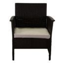 Il materiale con cui è stato creato è il polyrattan di color noce, una fibra sintetica per mobili da giardino che li rende completamente impermeabili, facili da pulire e resistenti ai raggi UV.