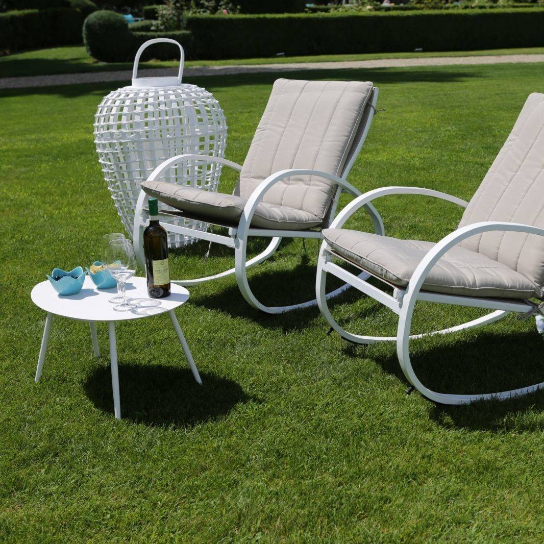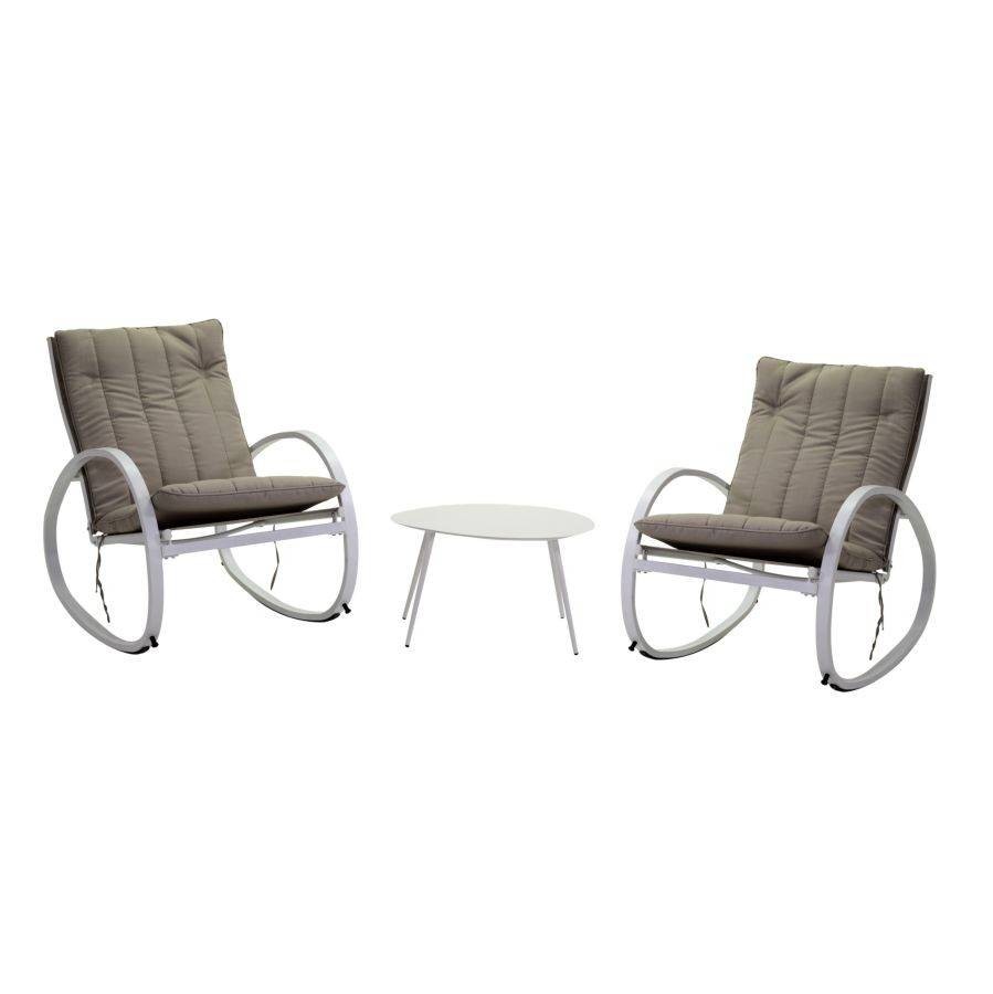 Il set è formato da due poltroncine a dondolo, dotate di braccioli, arricchite da