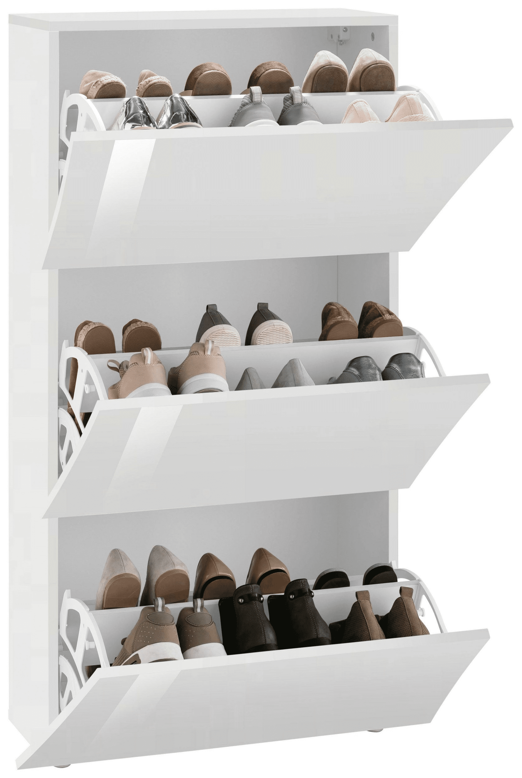 È dotata di 3 ante a ribalta e può contenere fino a 18 paia di scarpe.
