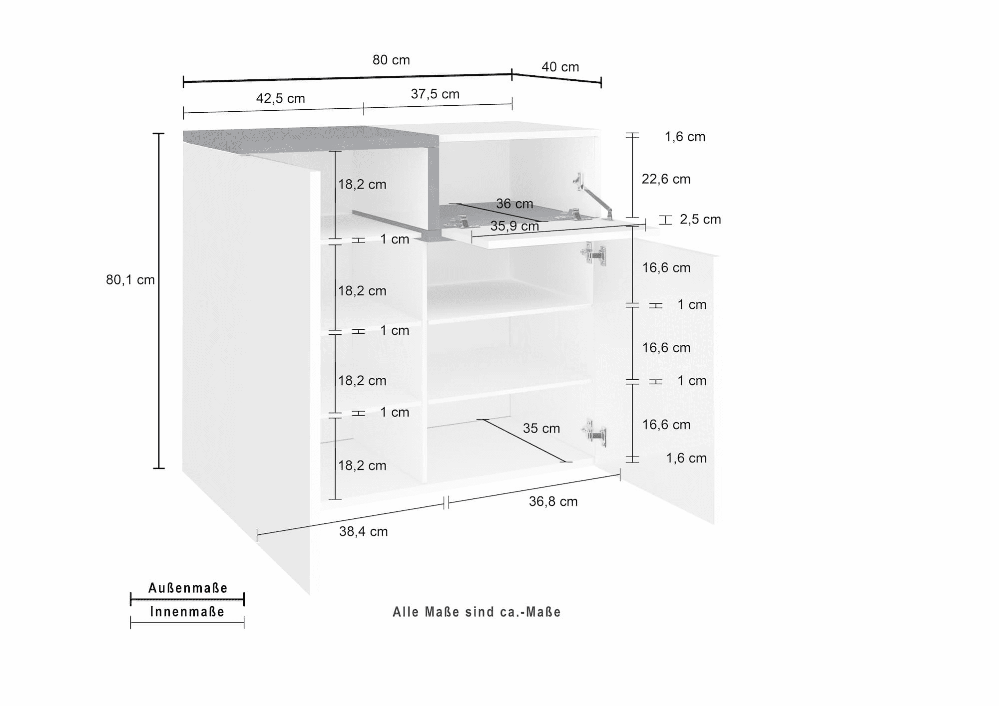 La scarpiera ZET si compone di 2 ante con apertura a battente, che offrono un ampio spazio di utilizzo. Inoltre, l’anta ribalta aggiunge una funzionalità extra, offrendo un vano interno dove è possibile conservare i prodotti per la pulizia delle scarpe.
