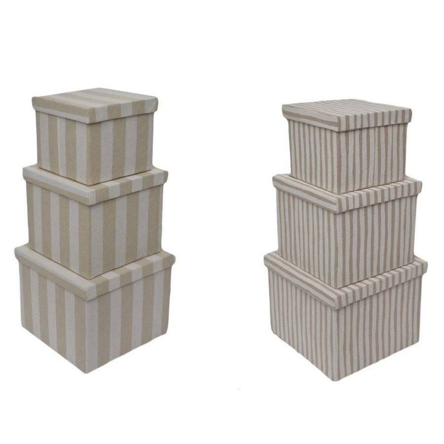 I cassetti in tessuto sono perfetti da inserire come scomparti negli armadi, oppure come semplici portaoggetti sopra le mensole. Il set è composto da sei scatole con una fantasia originale, a righe larghe e strette in color crema.