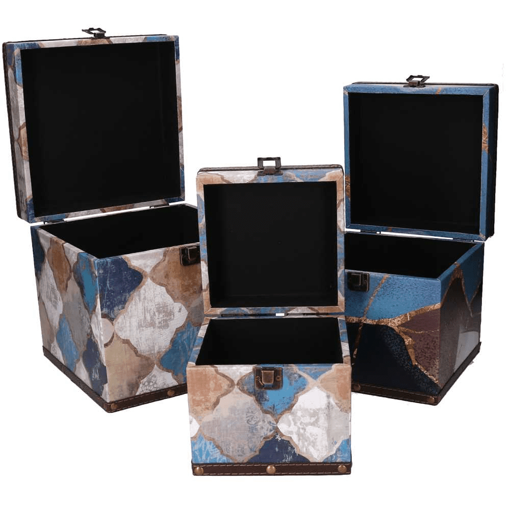 Scatola Ecopelle 3^ Blu Marocco Quadro Cm24X24H24