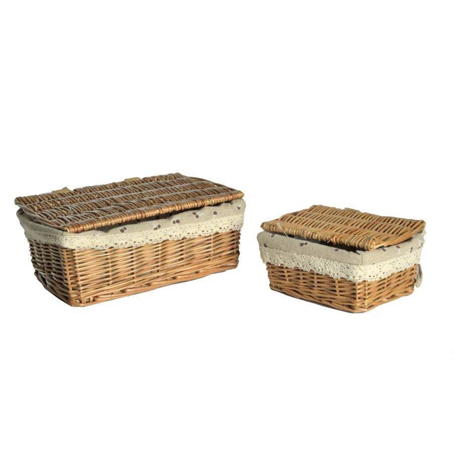 Il set è composto da due ceste pensili, in vimini , dotate di una maniglia in cima ed un decoro nella parte inferiore della cesta.