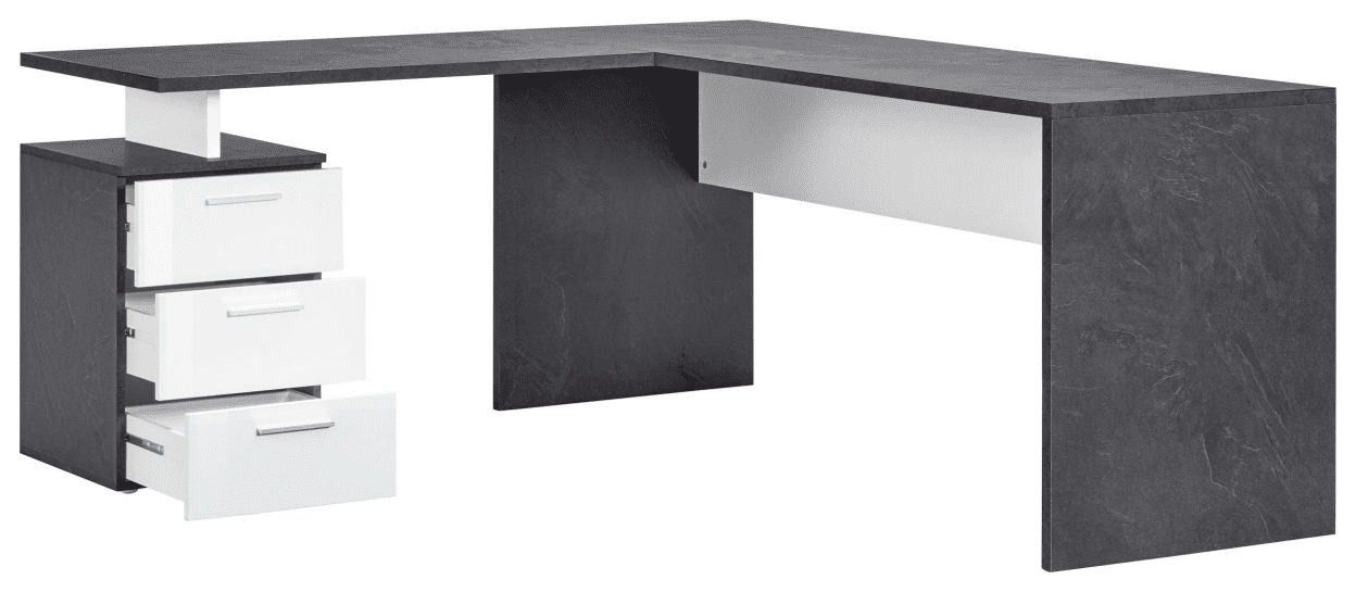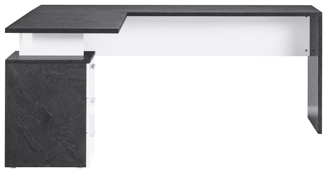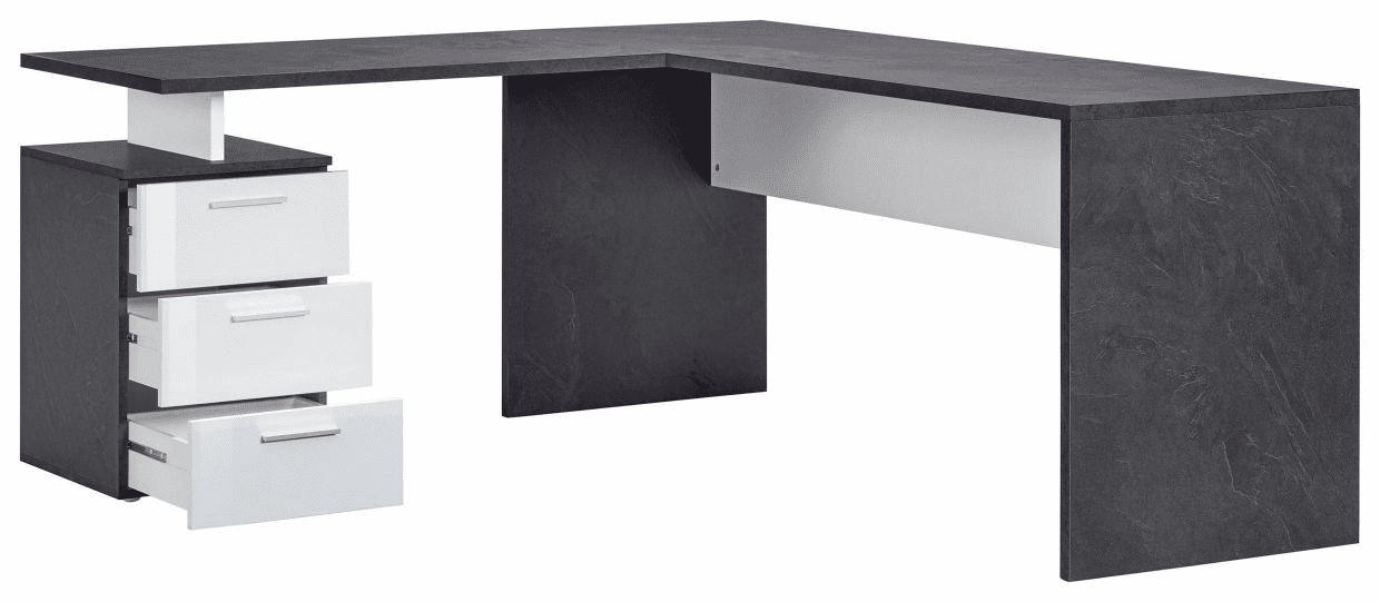 La scrivania ha un design innovativo con una cassettiera costituita da 3 cassetti.