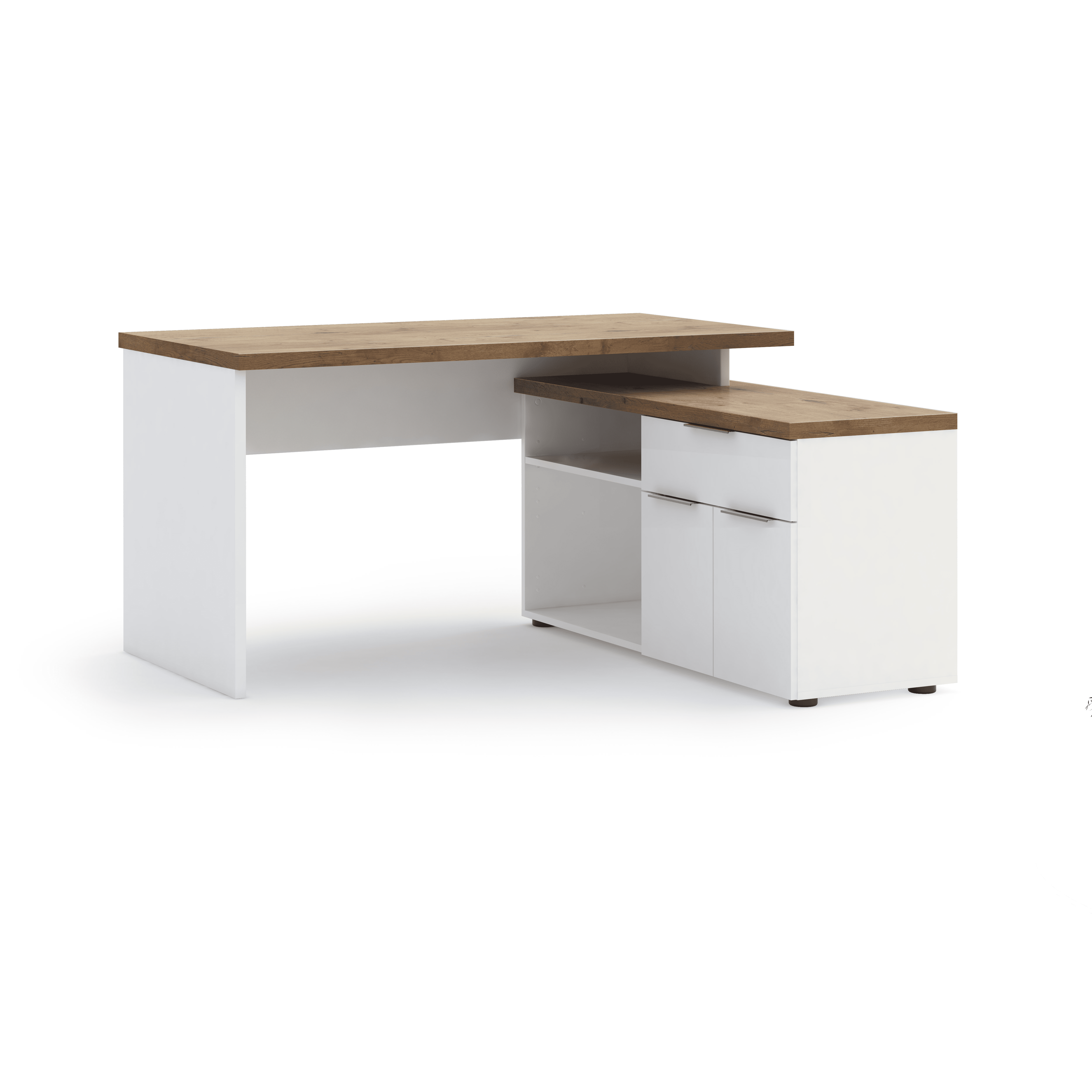 Il mobiletto laterale integrato offre una soluzione pratica per l’organizzazione, con vani a giorno, un cassetto e uno spazio chiuso da due ante, perfetti per documenti e accessori d’ufficio.