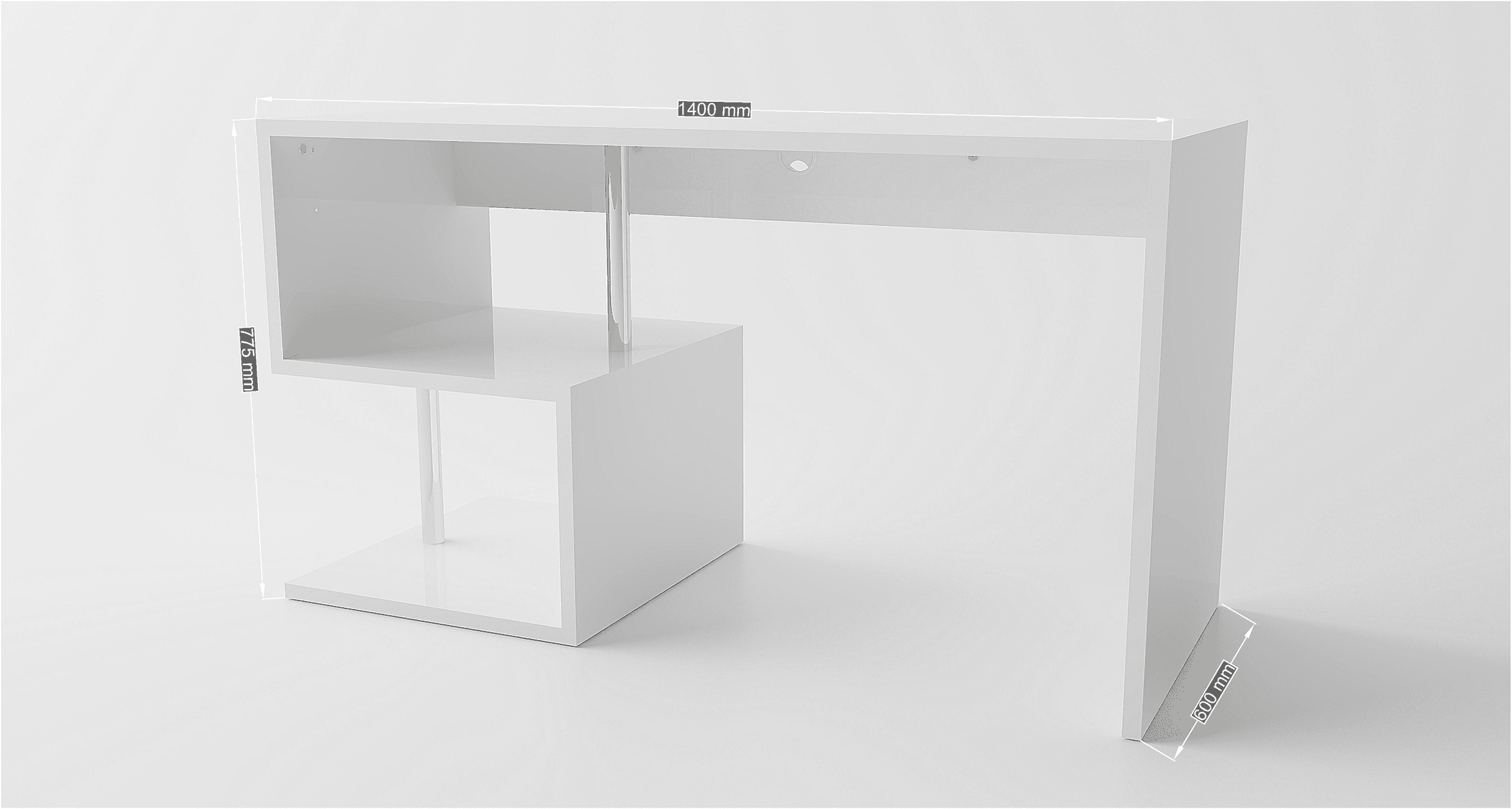 È priva di cassetti che sono sostituiti da una gamba a forma di esse che crea due comodi piani a giorno per raccogliere oggetti e documenti per Il lavoro. È pratica e comoda.