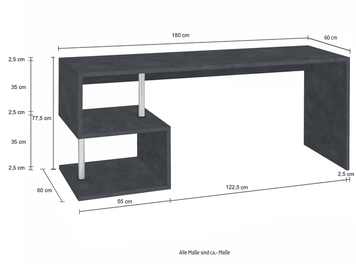 La scrivania ESSE lineare da 180 cm è una delle soluzioni più diffuse nell’arredo dell’ufficio moderno, 100% made in Italy. La scrivania ha un design innovativo. È priva di cassetti che sono sostituiti da una gamba a forma di esse che crea due comodi piani a giorno per raccogliere oggetti e documenti per Il lavoro. È pratica e comoda. La struttura è in melaminico spessore 25 mm colore report. Viene fornita in kit di montaggio e dotata di istruzioni semplici e dettagliate.
