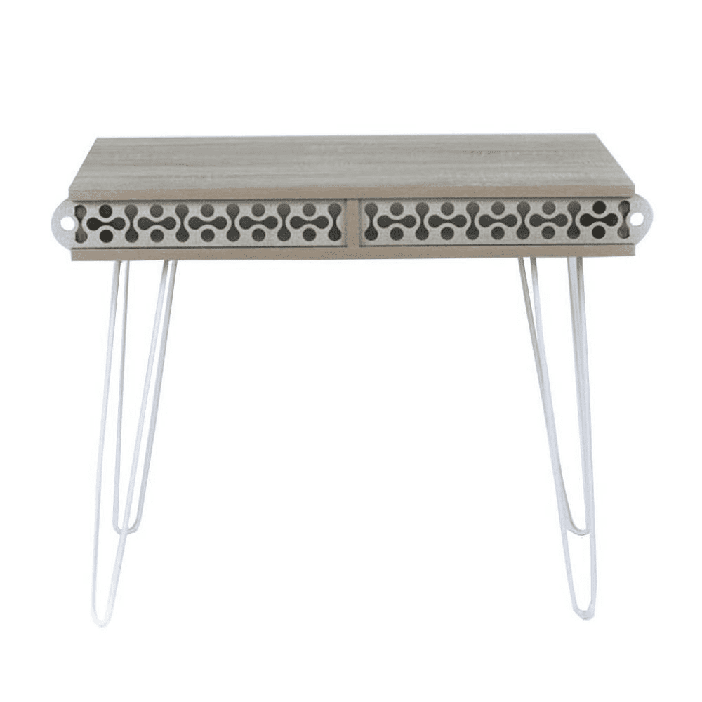 Scrivania Illia piedi in metallo bianco e piano rovere 96x51x75 HMT190642