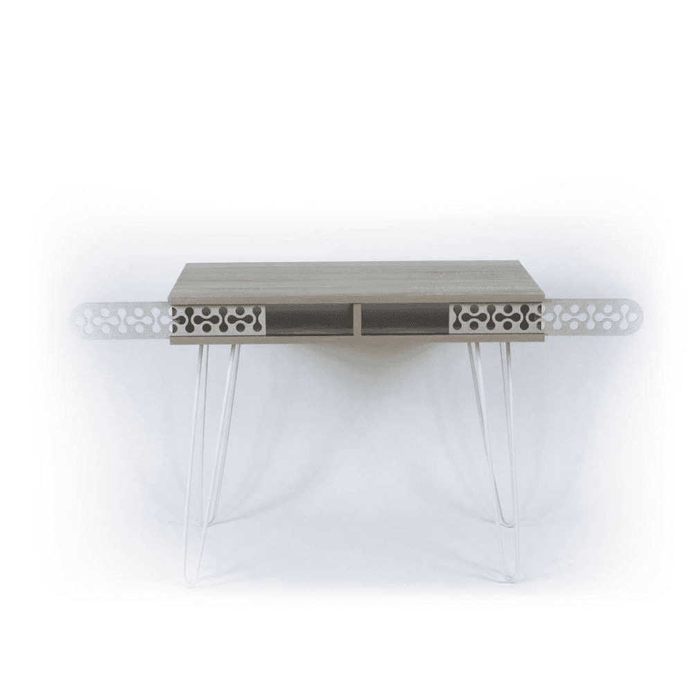 Scrivania dal design originale. Si ispira agli anni 60 ma rivisitata ai giorni nostri. Il vano sotto il piano è occultato da due griglie scorrevoli molto eleganti e raffinate. Donerà sicuramente originalità al tuo ufficio, allo studio e alla cameretta dei tuoi bambini.