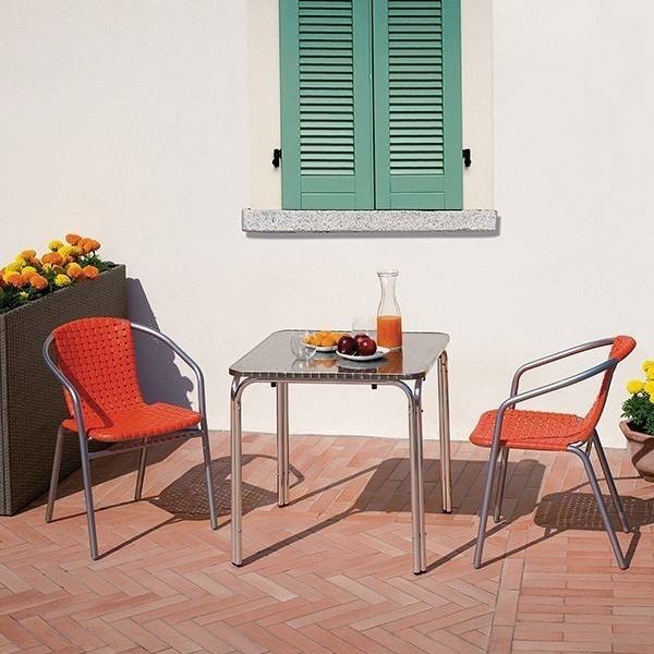 La selezione di sedie è vasta, tra queste spiccano le sedie epoxy in ferro silver con seduta in plastica colorata arancio.