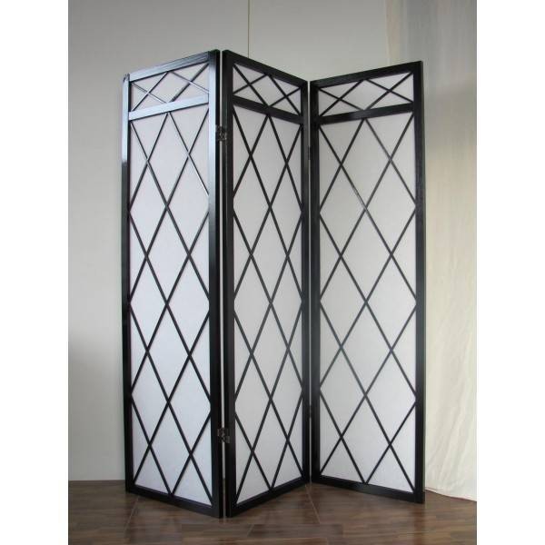 Paravento in legno nero lucido e carta di riso